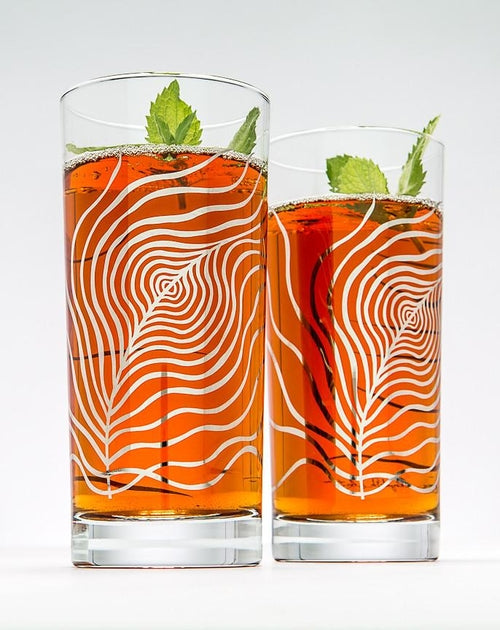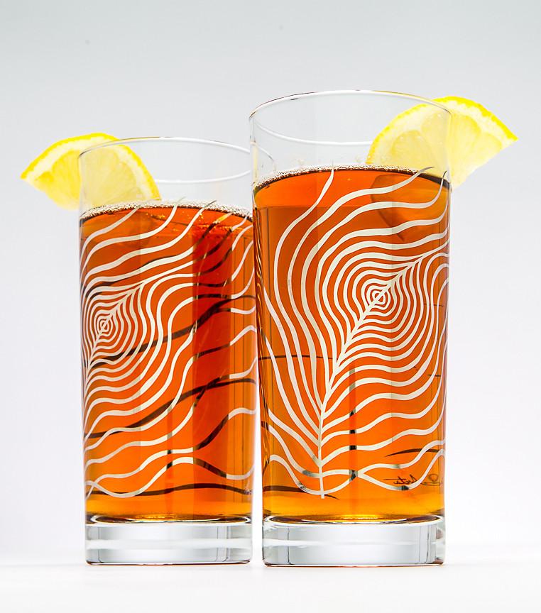They look fabulous from every angle and the design changes with the turn of your wrist. You'll love how the feather is magnified through the glass when it's filled with liquid.