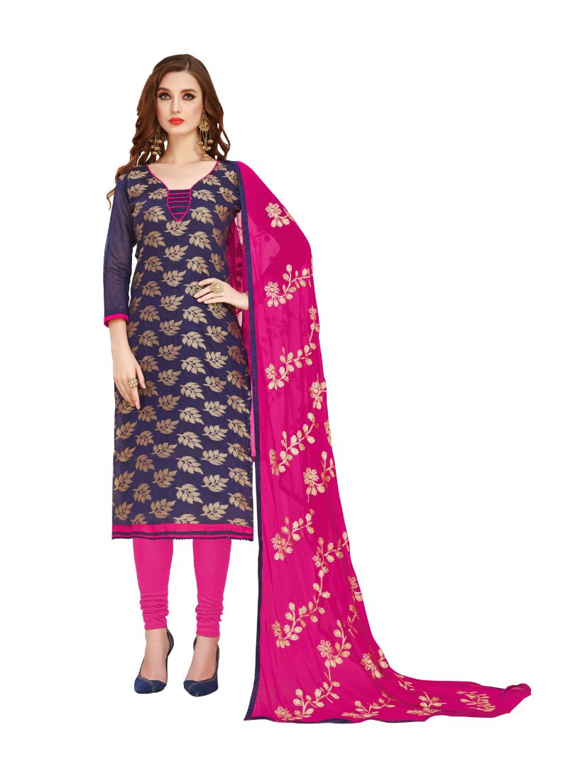 Generic Women's Banarasi Jacquard Salwar Material (Navy Blue, 2 Mtr).