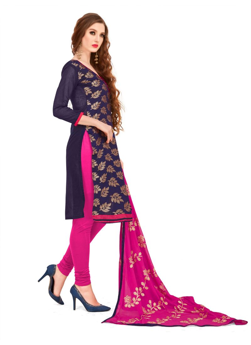 Top Color: Navy Blue, Bottom Color: Pink, Dupatta Color: Pink.