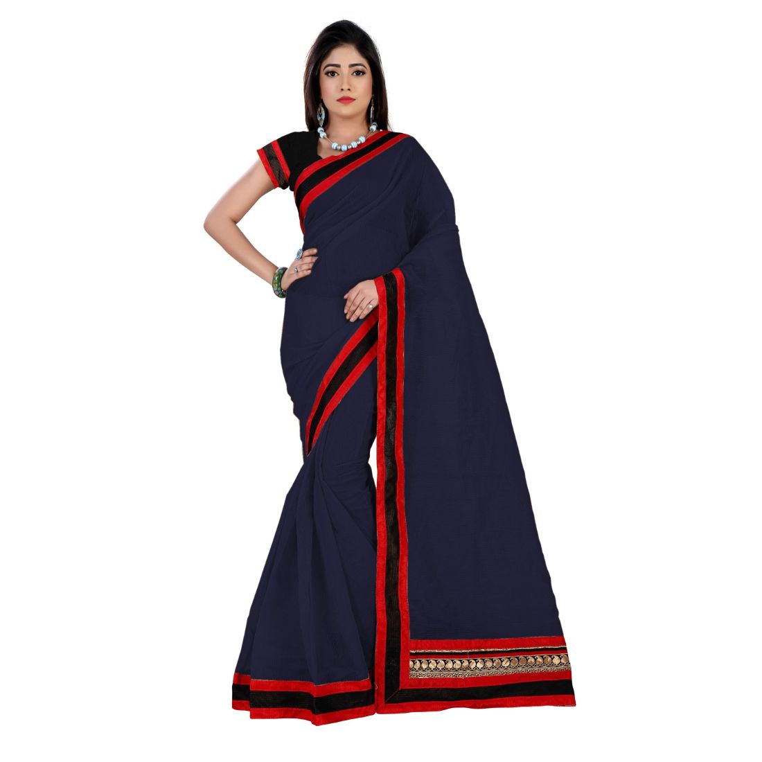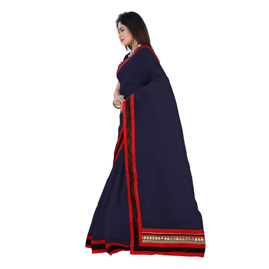 Generic Women's Chiffon Saree (Navy Blue, 5-6 Mtrs)