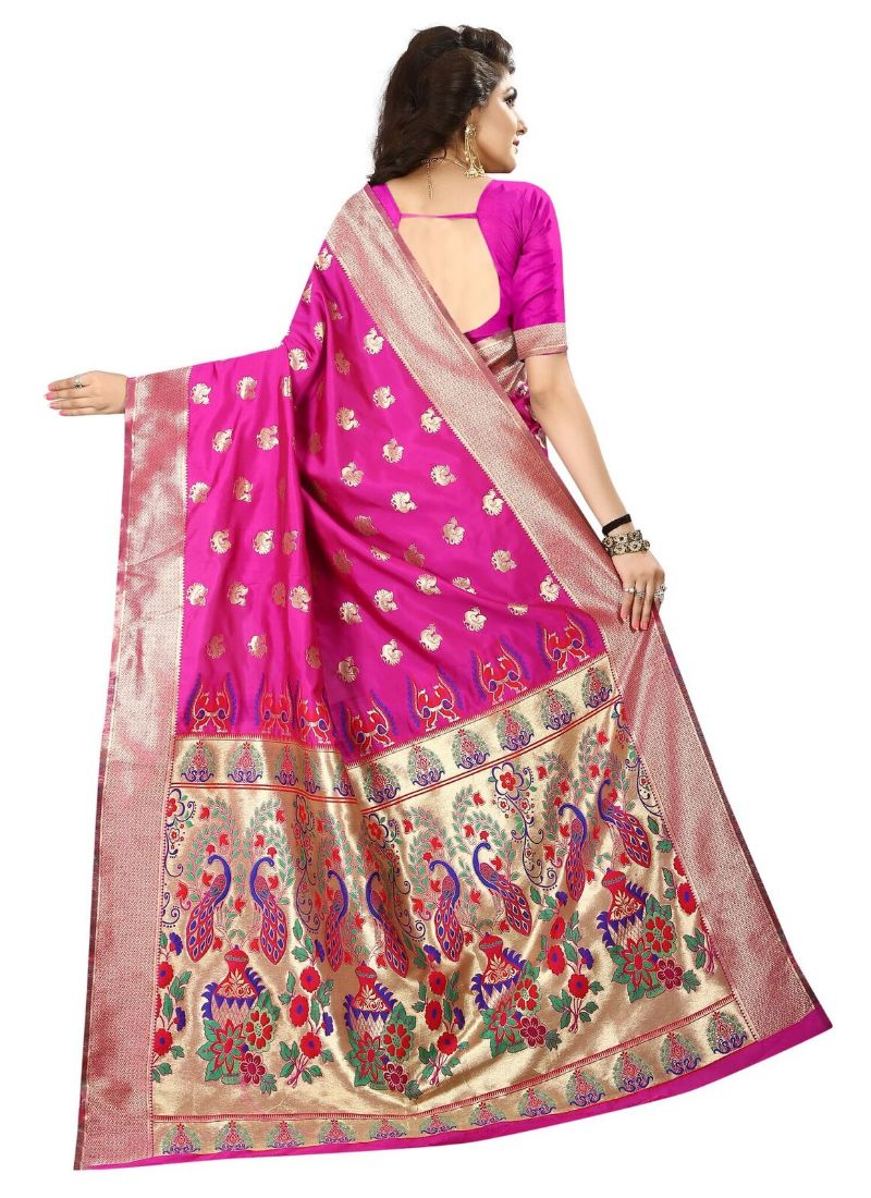 Generic Women's Jacquard Art silk Saree with Blouse (Pink, 5-6 Mtrs).