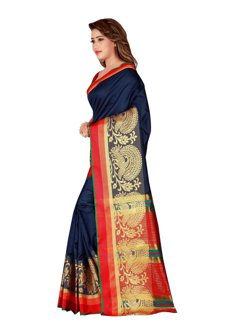Generic Women's Poly Silk Saree with Blouse (NavyBlue, 5-6 Mtrs).