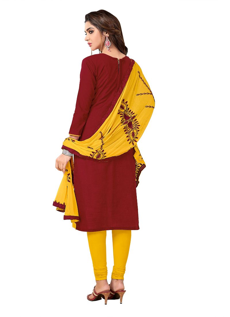 Generic Women's Slub Cotton Salwar Material (Maroon, 2-2.5mtrs).