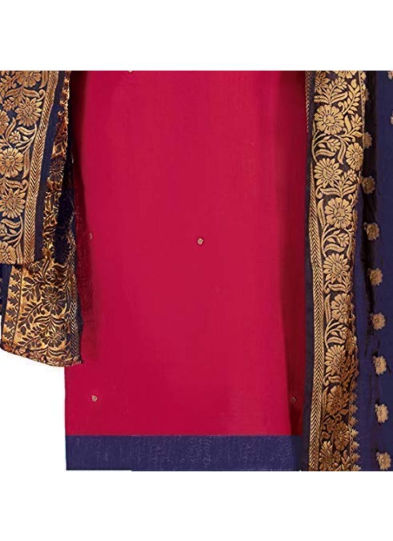 Top Color: Magenta, Bottom Color: Navy Blue, Dupatta Color: Magenta Navy Blue.
