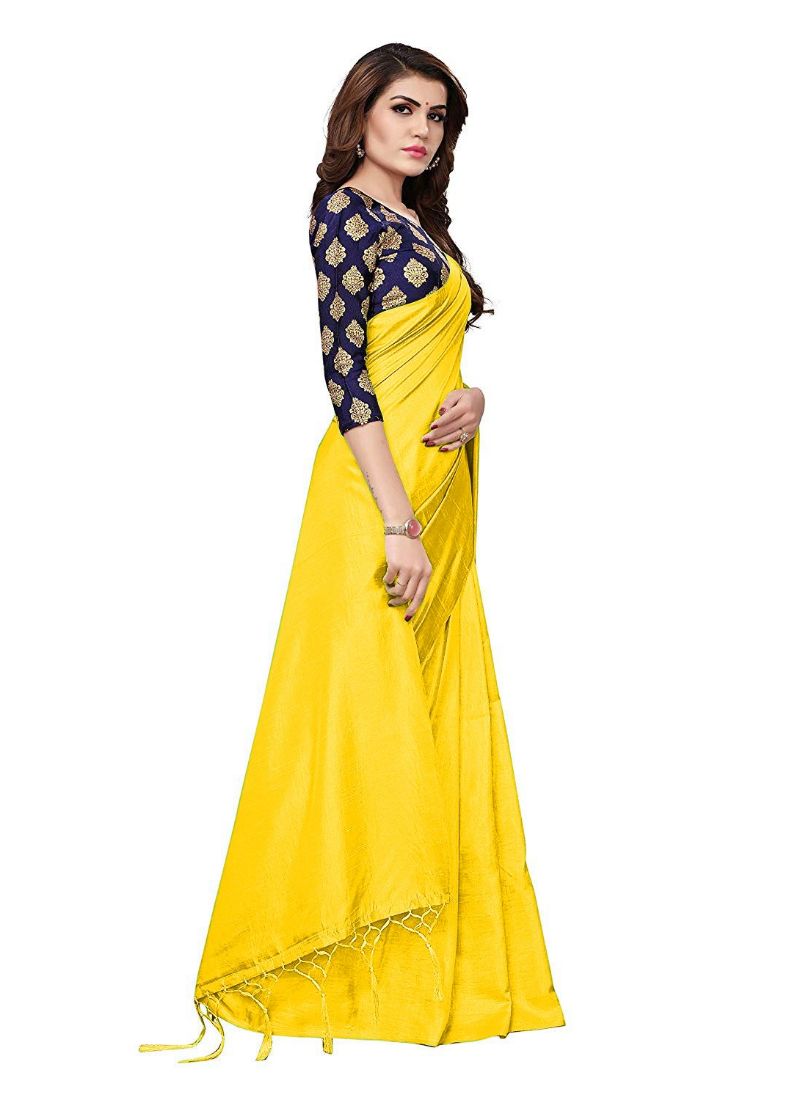 Generic Women's Zoya Silk Saree (Yellow, 5-6 Mtrs)