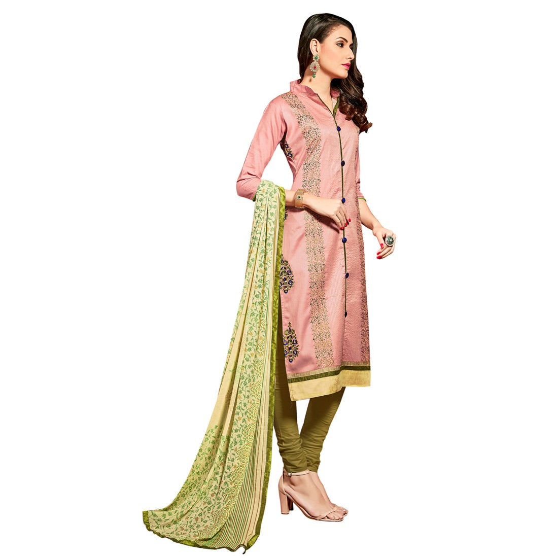 Glaze Cotton Fabric Peach Color Dress Material