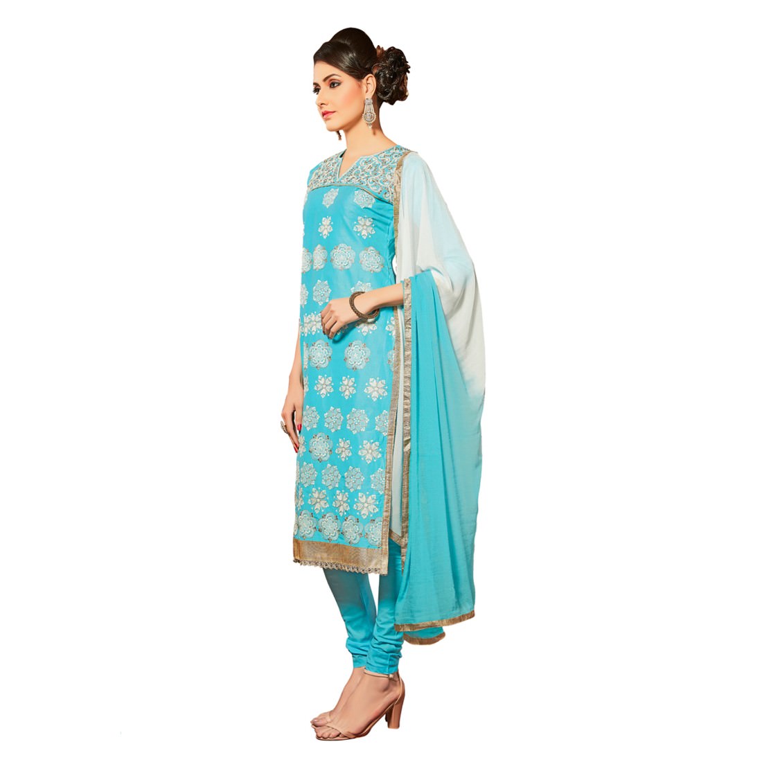 Glaze Cotton Fabric Sky Blue Color Dress Material
