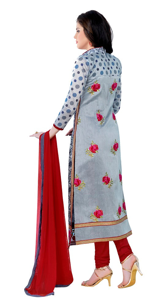 Grey Cotton Embroidered Party Wear Salwar Suit