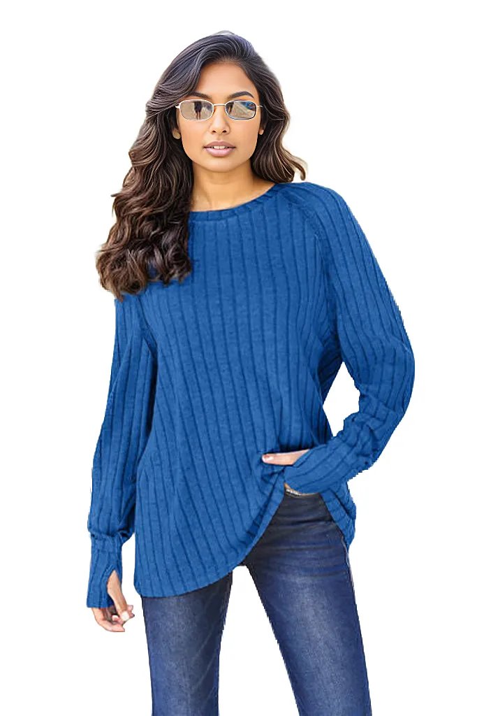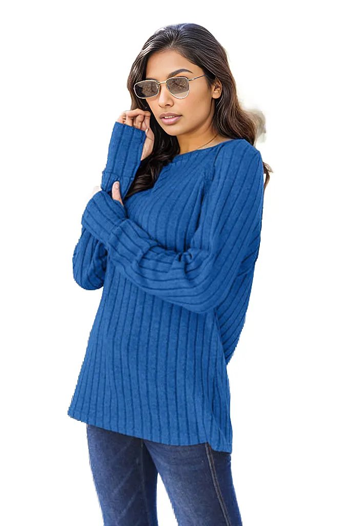 Basic Bae Full Size Ribbed Round Neck Long Sleeve Knit Top