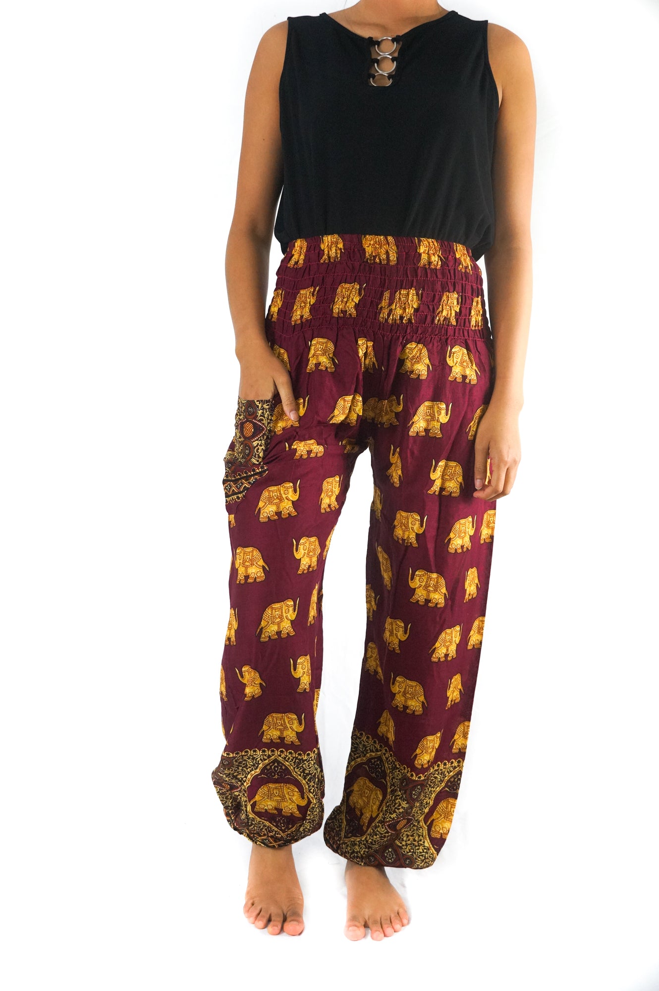 Burgundy ELEPHANT Women Boho Pants Hippie Pants Yoga Pants