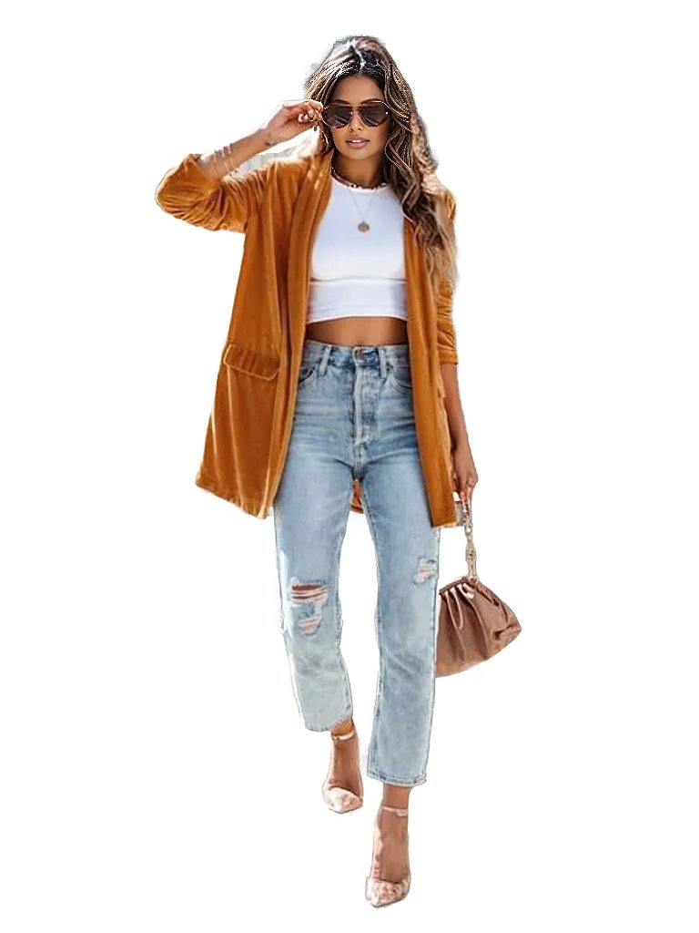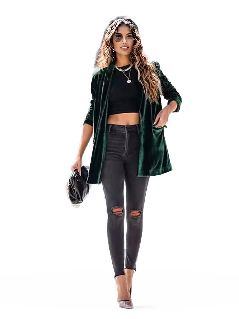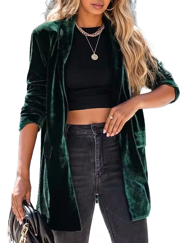 Button Up Long Sleeve Blazer with Pocket