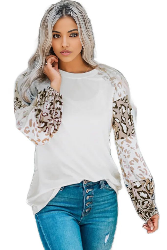 Leopard Round Neck Dropped Shoulder T-Shirt
