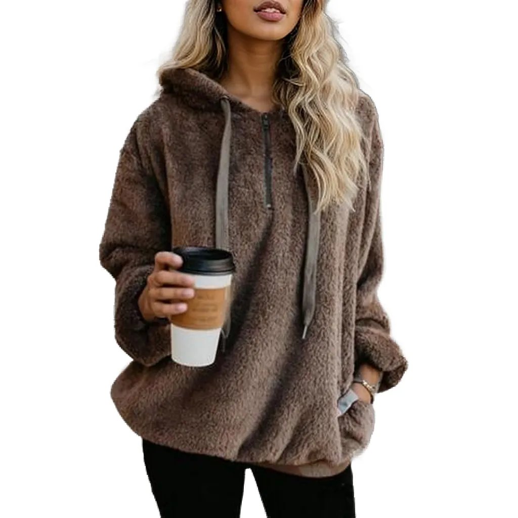 Quarter-Zip Drawstring Teddy Hoodie