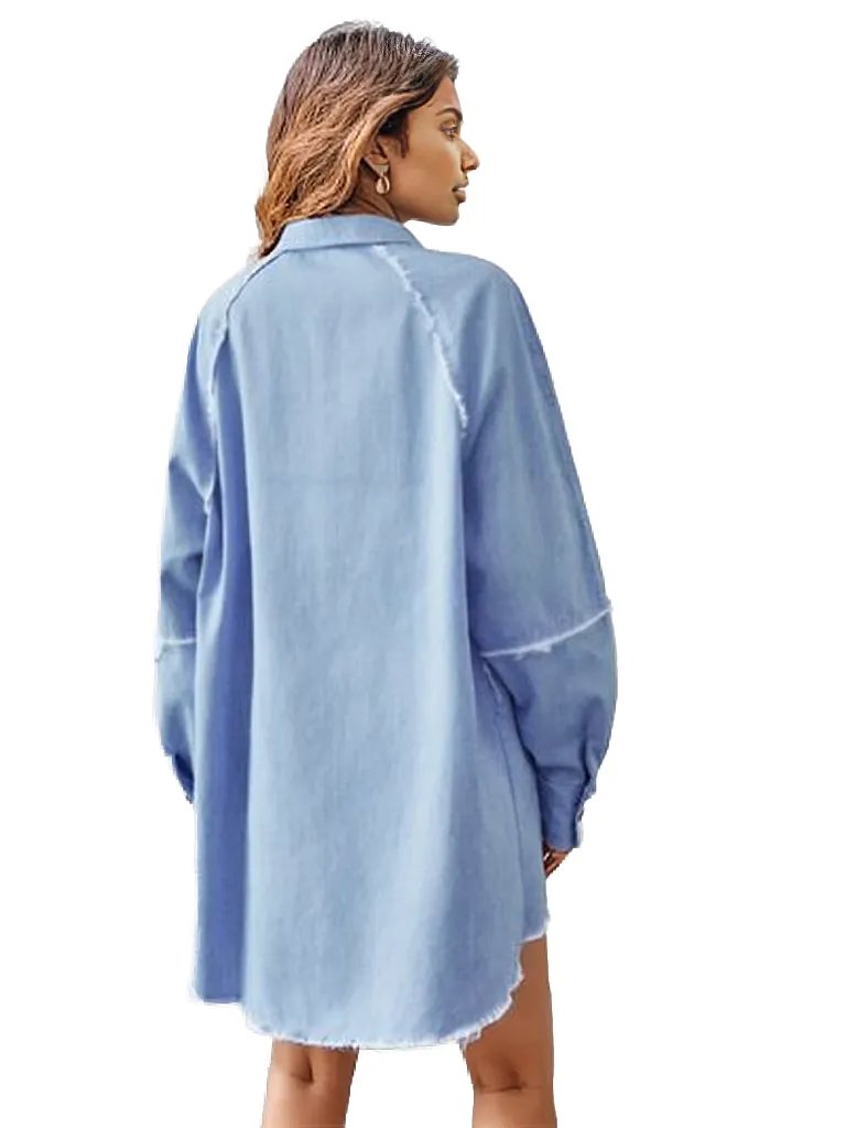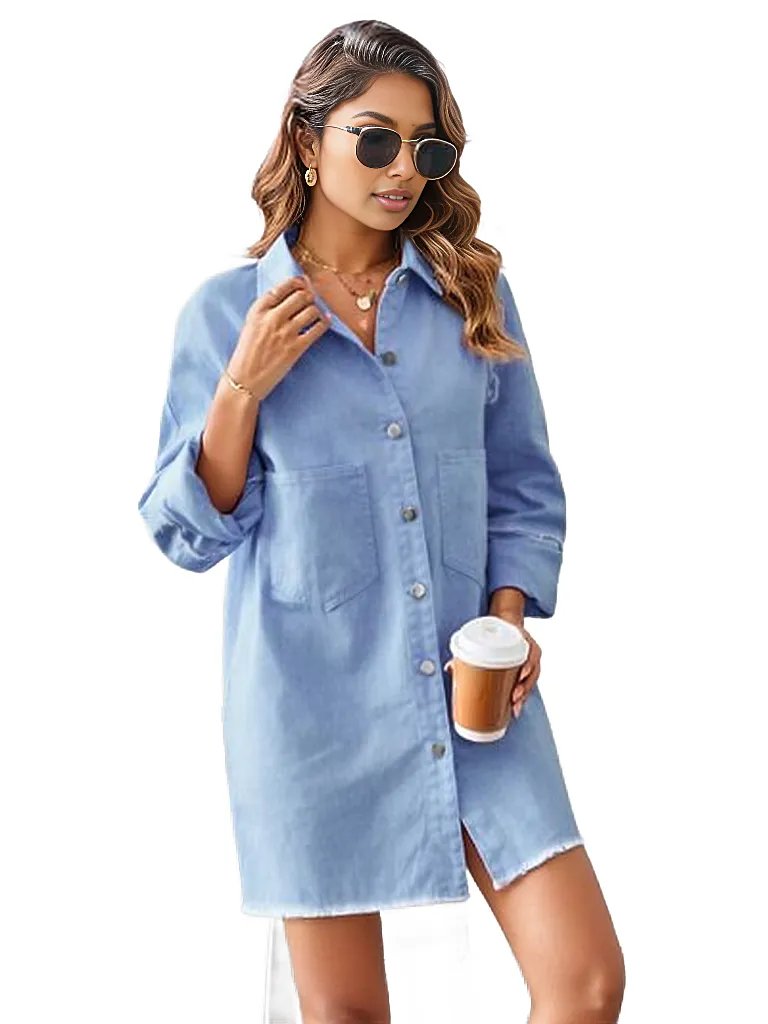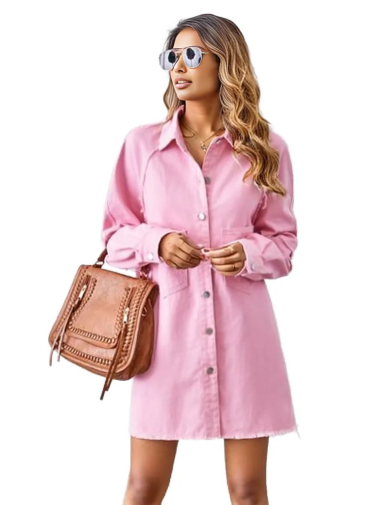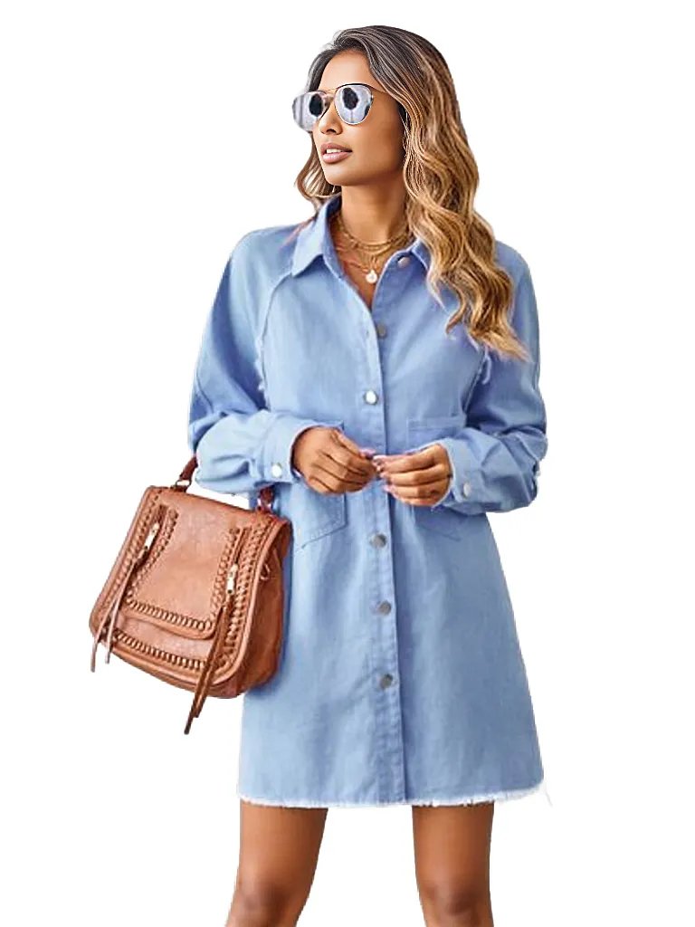 Raw Hem Button Up Denim Dress