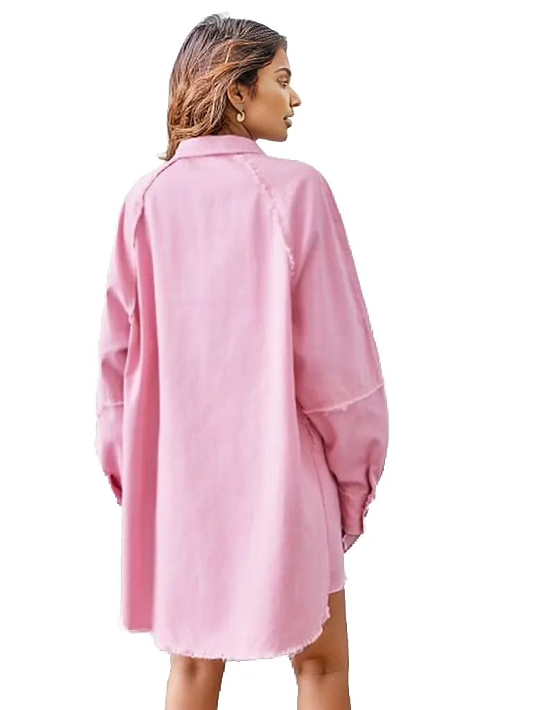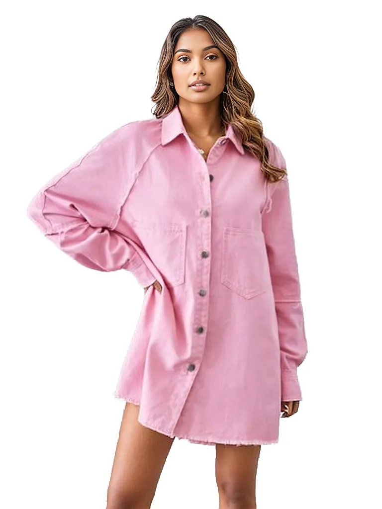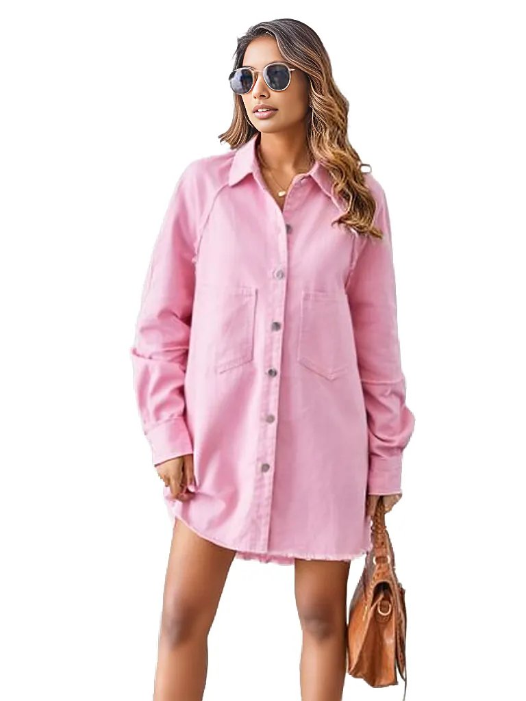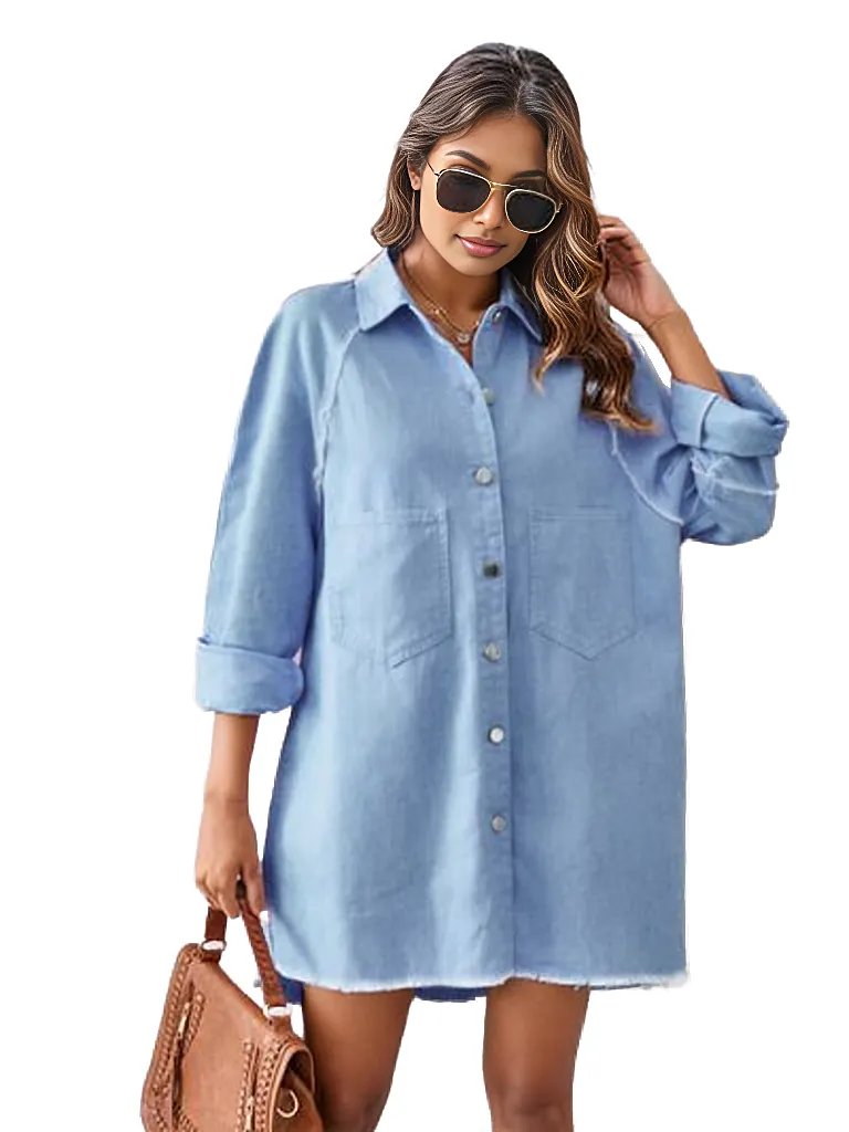 Raw Hem Button Up Denim Dress