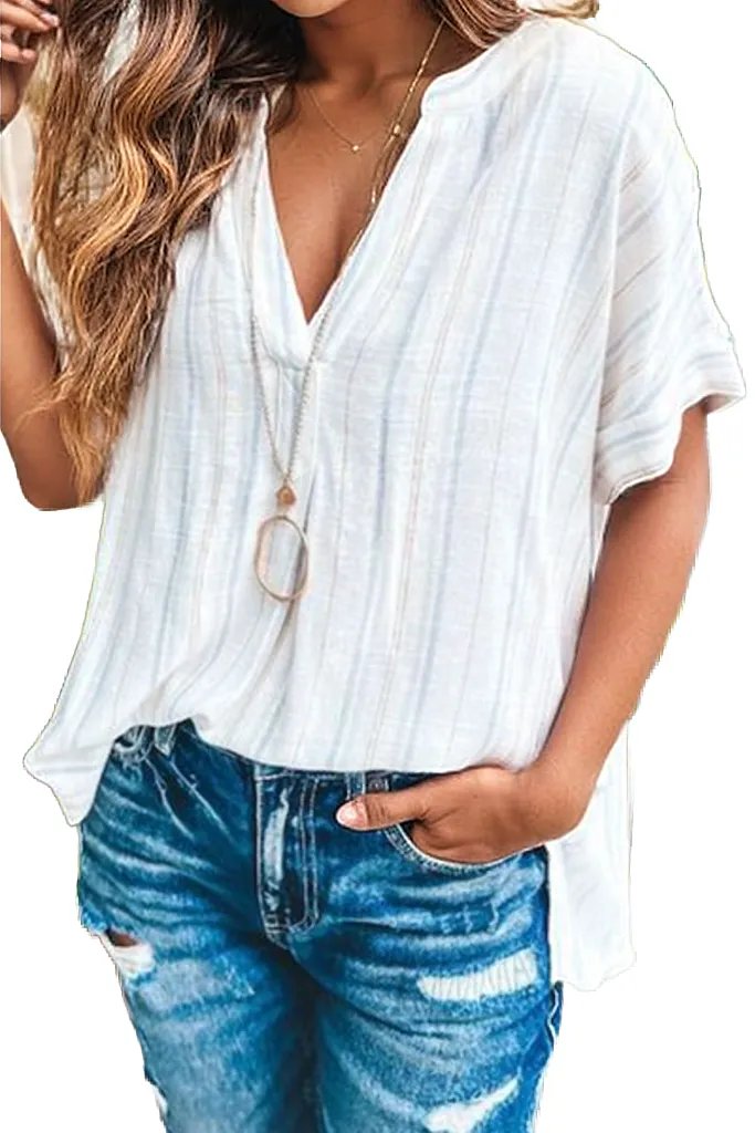 Striped Notched Short Sleeve T-Shirt