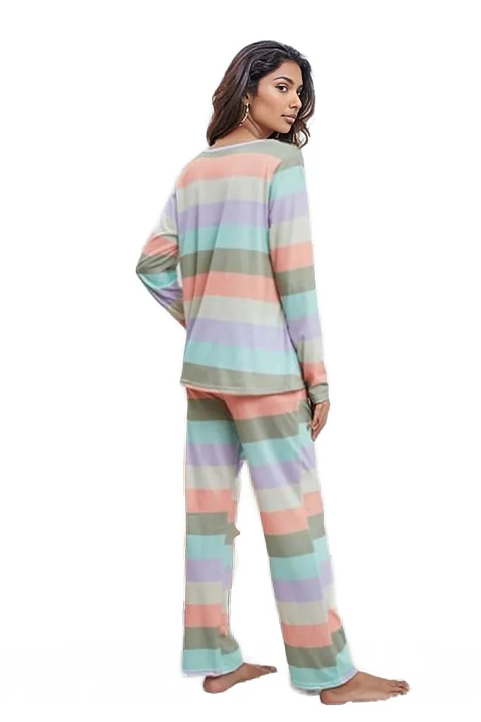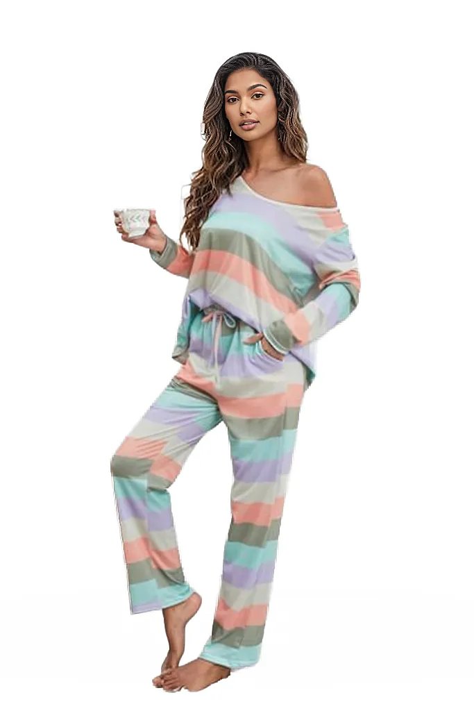 Striped Round Neck Long Sleeve Top and Drawstring Pants Lounge Set