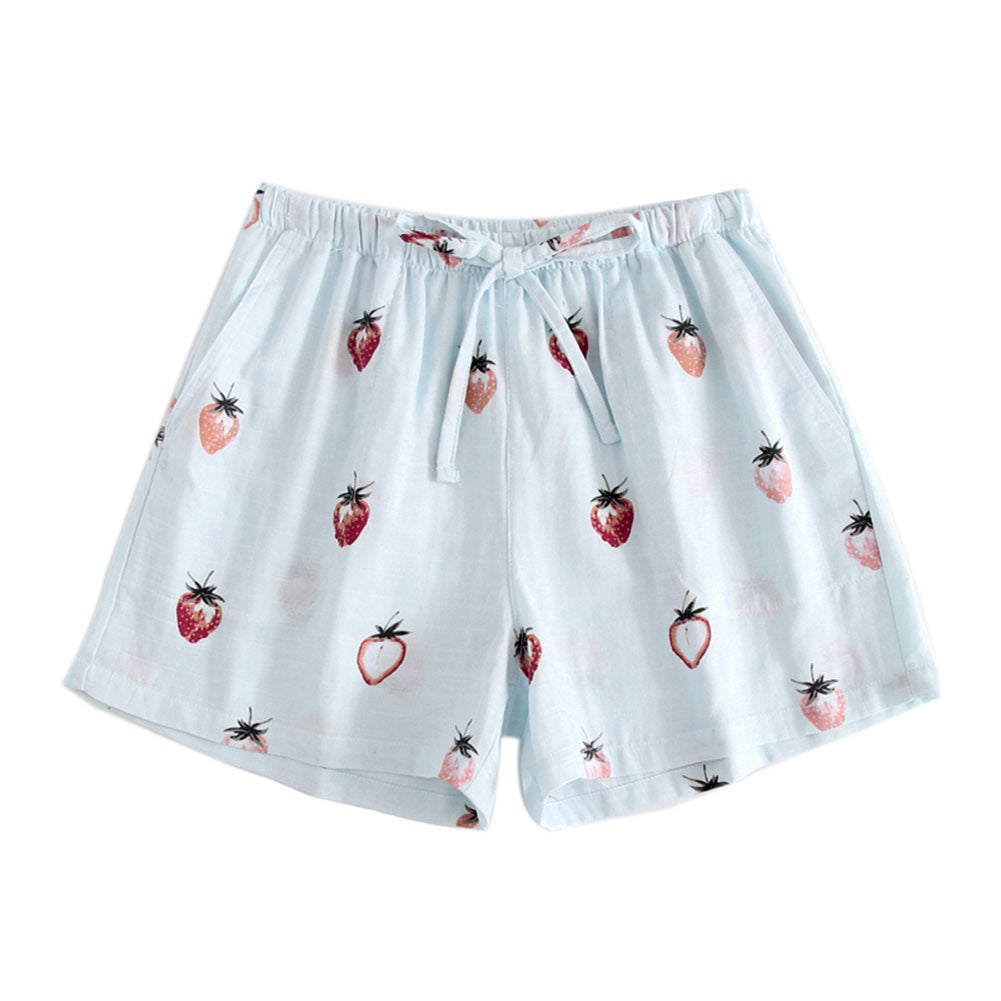Womens Pajama Pants Cotton Loose Pajama Bottoms Loungewear - Blue Strawberry
