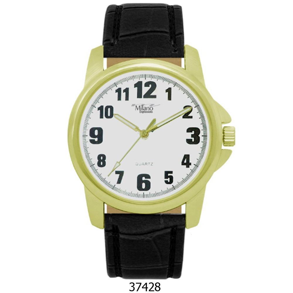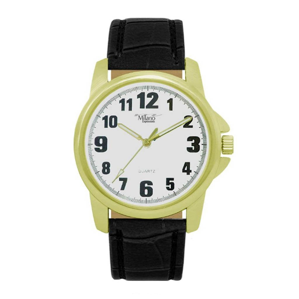 M Milano Expressions Black Faux Leather Strap Watch, Gold Case, White Dial
