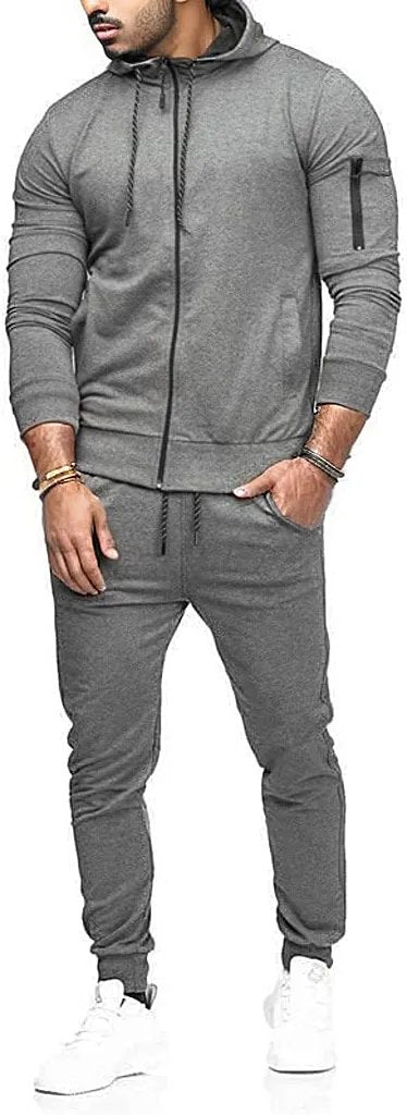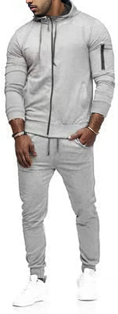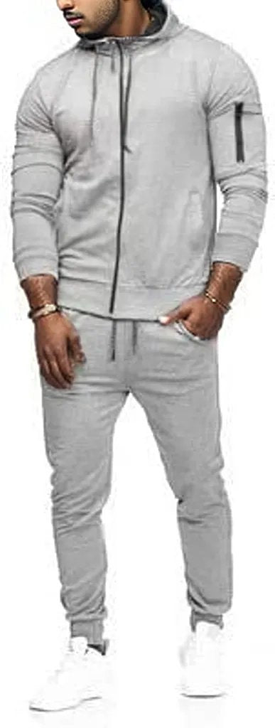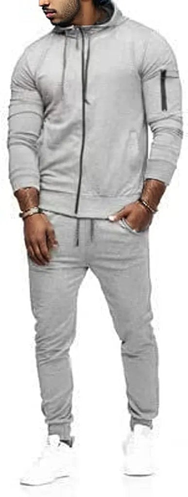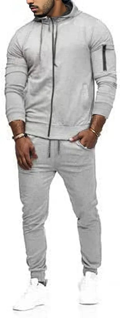 Mens 2 Piece Tracksuit Zipper Hoodie Pants Athletic Tracksuits Casual Hooded Outdoor Sport Suits