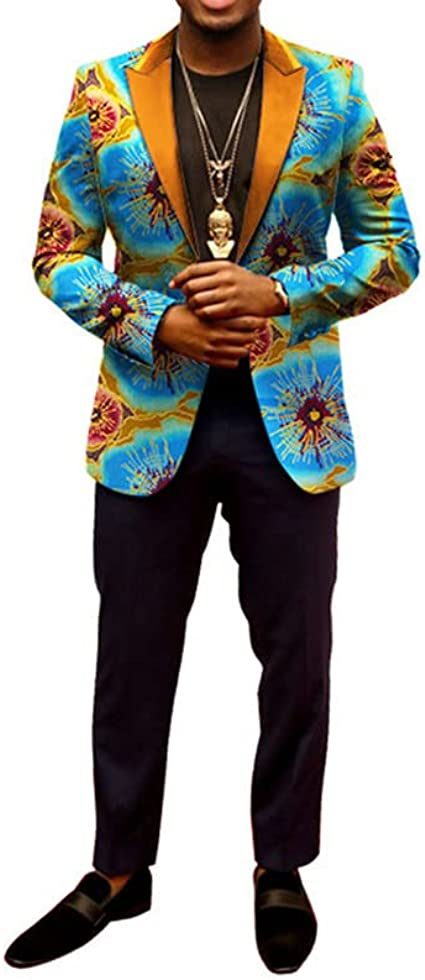 100% CottonHigh quality: Men's African print suits are made of quality cotton material that is comfortable; soft; breathable and easier to clean and hold in shape.Design: African ethnic print; button closure; casual single-breasted suit jacket; closure collar; exquisite design; fashion trend; make you stand out in the crowd.Match: Mens African print slim fit jacket is versatile. You can wear it with black pants and some metal necklaces. It will look great for banquets; parties and festivals.Occasion: Men's African print suit jacket is suitable for weddings; business; presentations; parties; events; celebrations; balls; performances; dates; graduations; weddings and other formal occasions; This blazer is a great gift for fathers; sons; boyfriends and friends.Delivery: We will ship out your orders within 7 business day by E-packet or other commercial post service. We have Standard Shipping service and Expedited shipping to choose. About Standard Shipping service; the packages will usually take about 7-15 business days to be delivered to you . About Expedited shipping; the packages will usually take about 4-6 business days to be delivered to you .