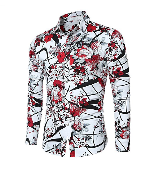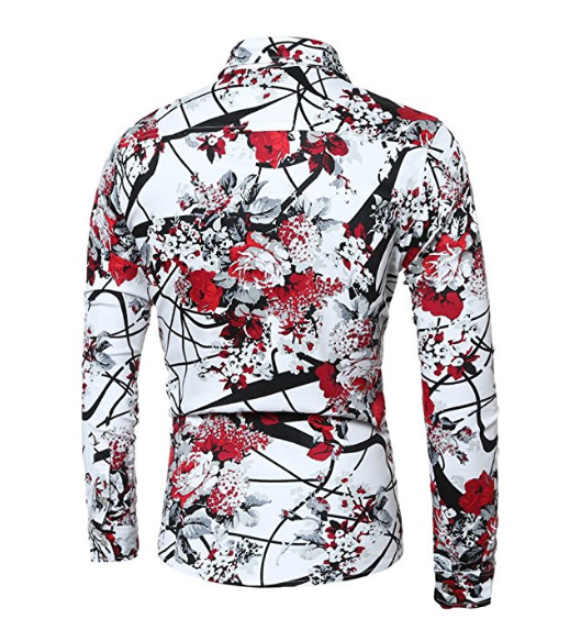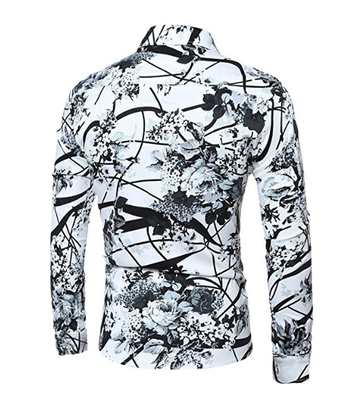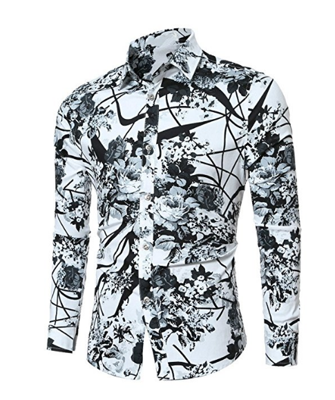 Mens Casual Shirt Long Sleeve Floral Stylish Slim Fit Button Down Dress Shirt