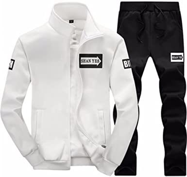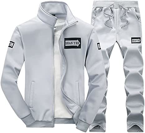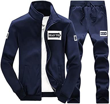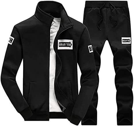 Men's Casual Slim Fit Tracksuit Long Sleeve Jogging Athletic Jacket Suits Set