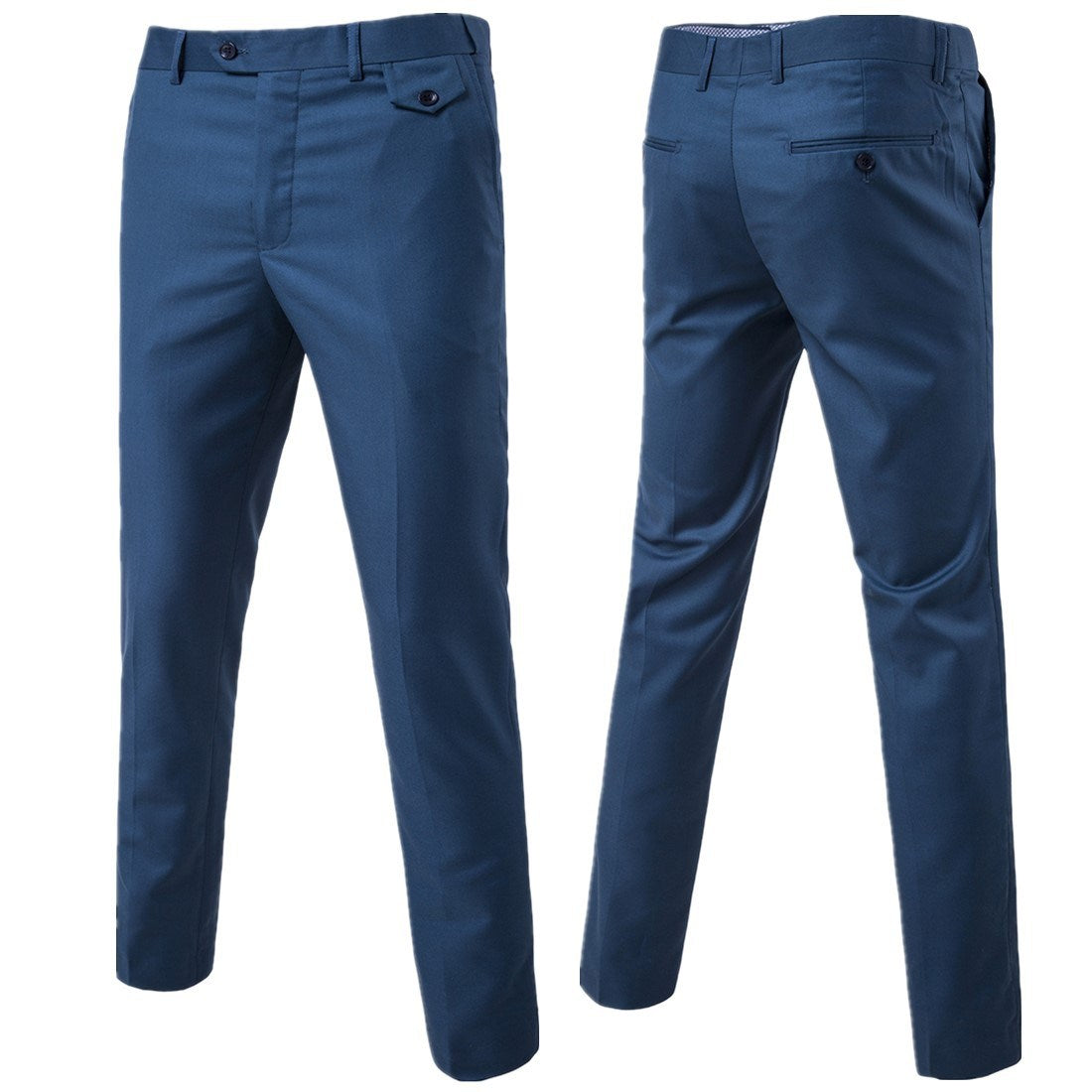 Mens Classic Slim Fit Stretch Flat Front Slacks Dress Pants
