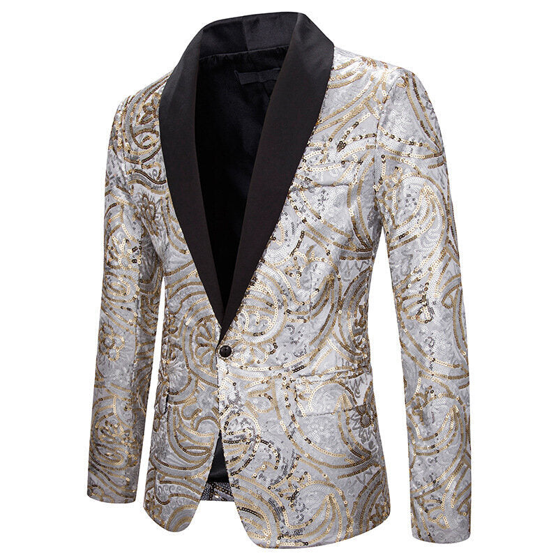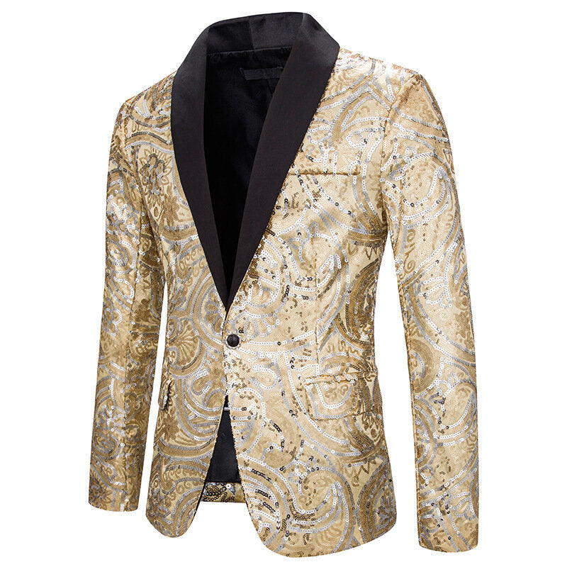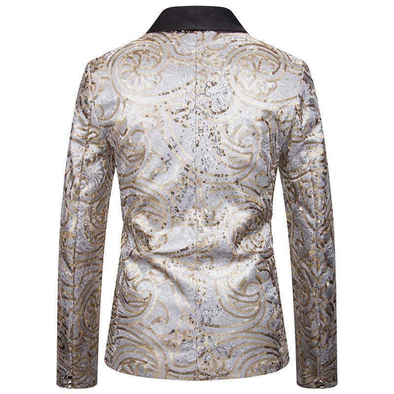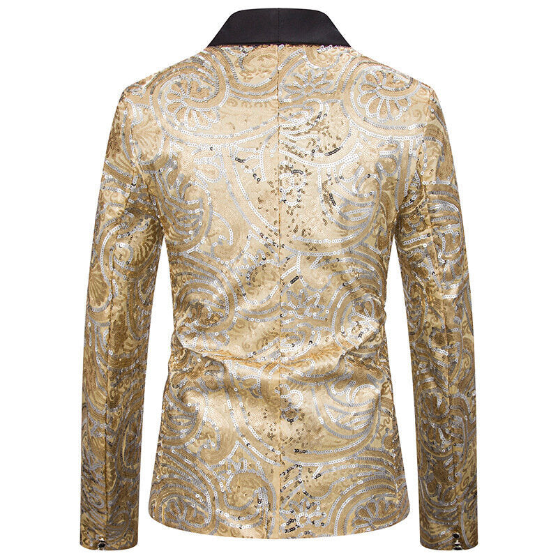 Mens Dress Blazer Gold Sequin Slim Fit Suit Jacket
