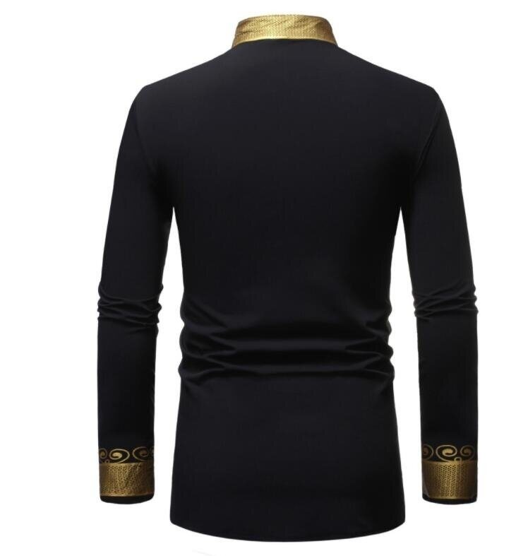 Mens Gold Floral Printed Collar Shirt Long Sleeve Blouse