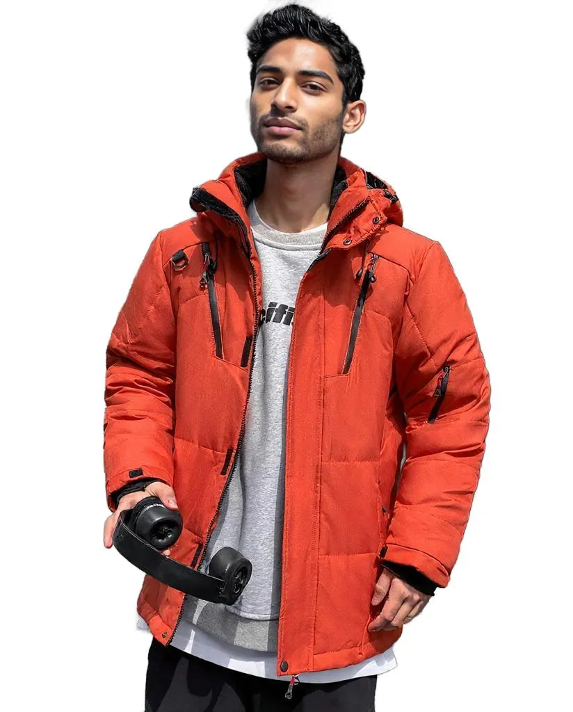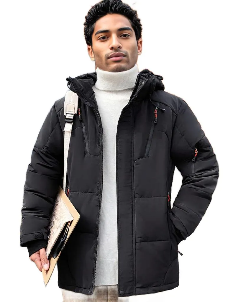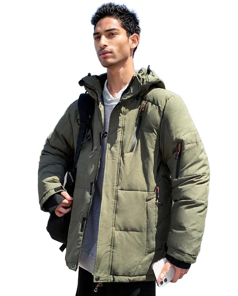 Discover the ultimate blend of style and practicality with the Men's High Collar Puffer Jacket. Crafted for the contemporary man, this jacket boasts a refined silhouette that seamlessly enhances any ensemble. Whether you're commuting to the office, tackling snowy slopes, or embarking on a weekend getaway, this puffer jacket guarantees a polished appearance while keeping you comfortably warm. The high collar offers additional protection against the cold, making it an ideal choice for those crisp winter days.