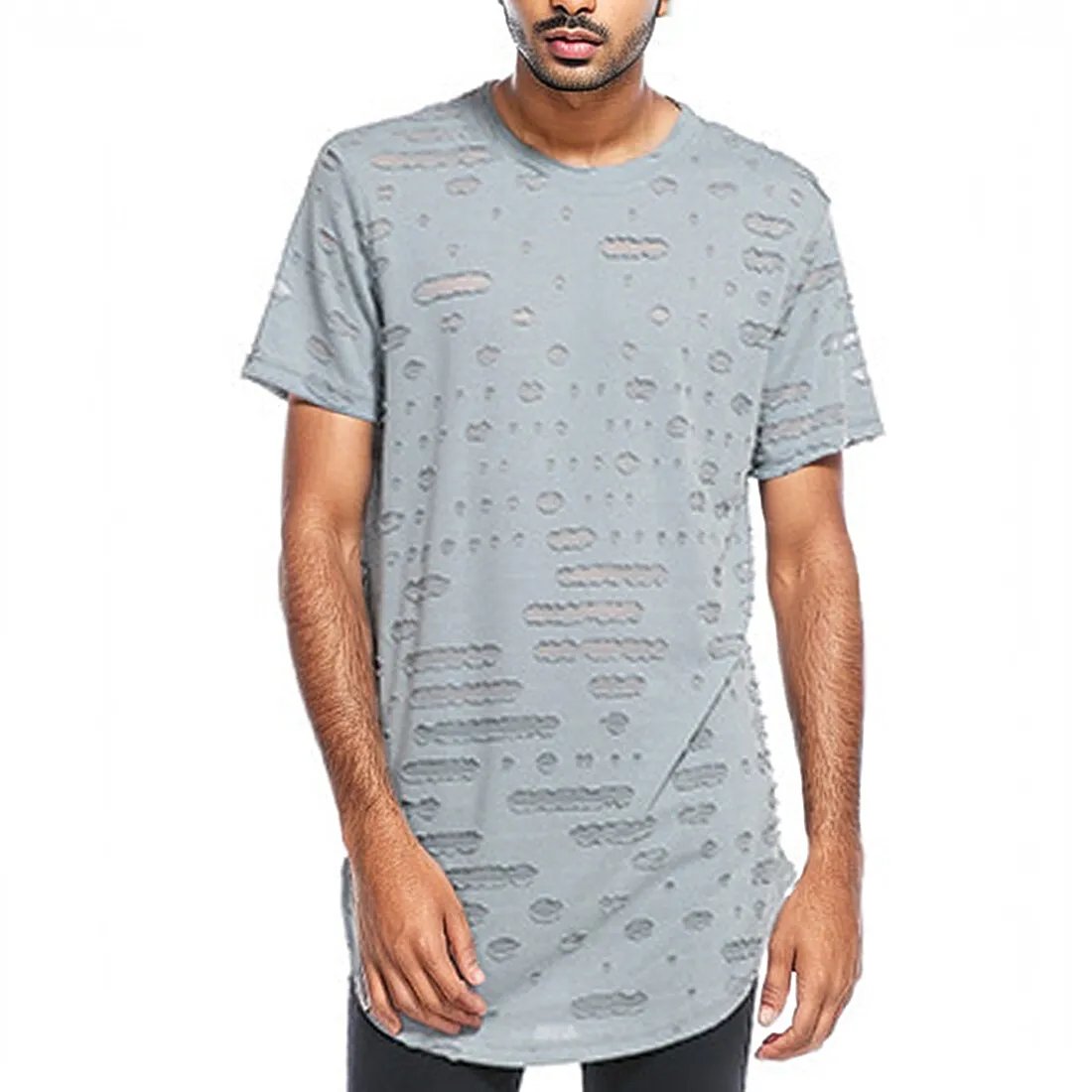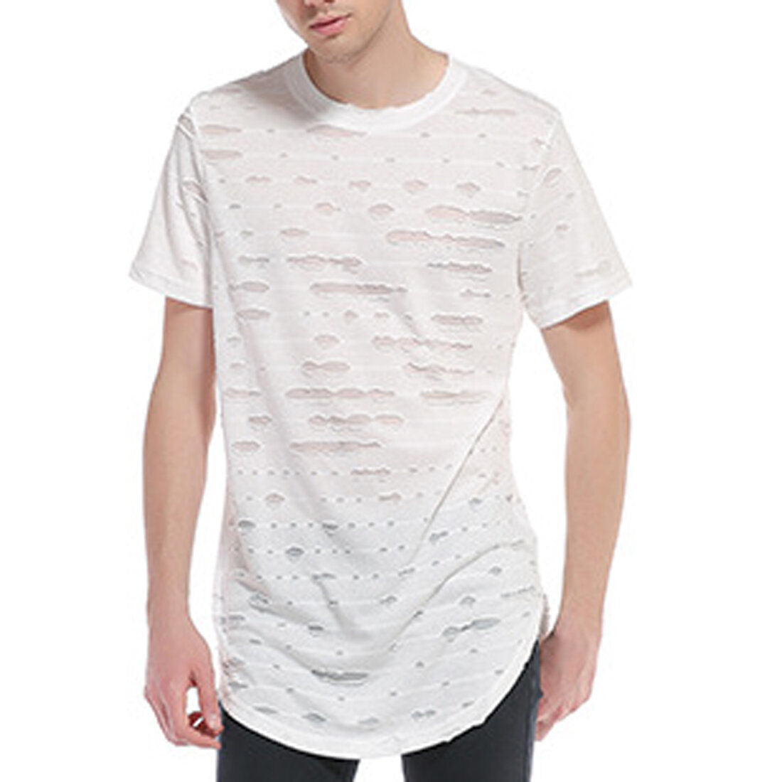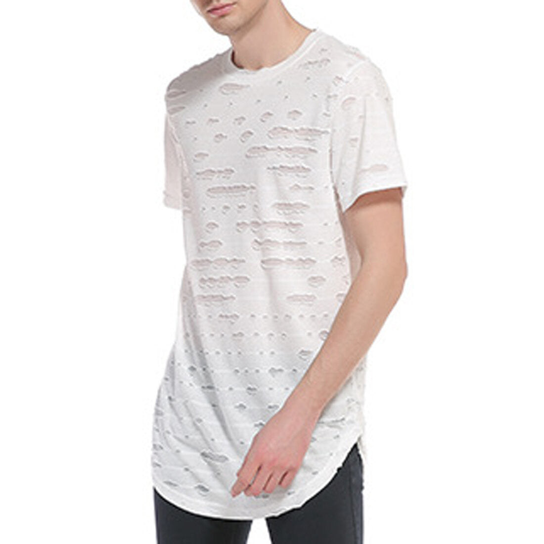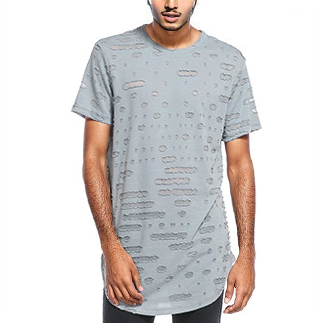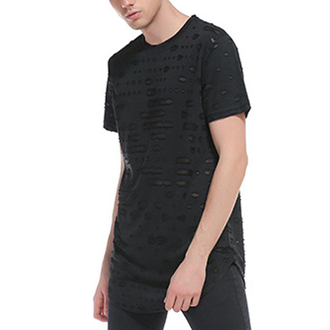 Mens Hipster Hip Hop Long Drop Tail T Shirts Hemline Hole Crewneck Tees