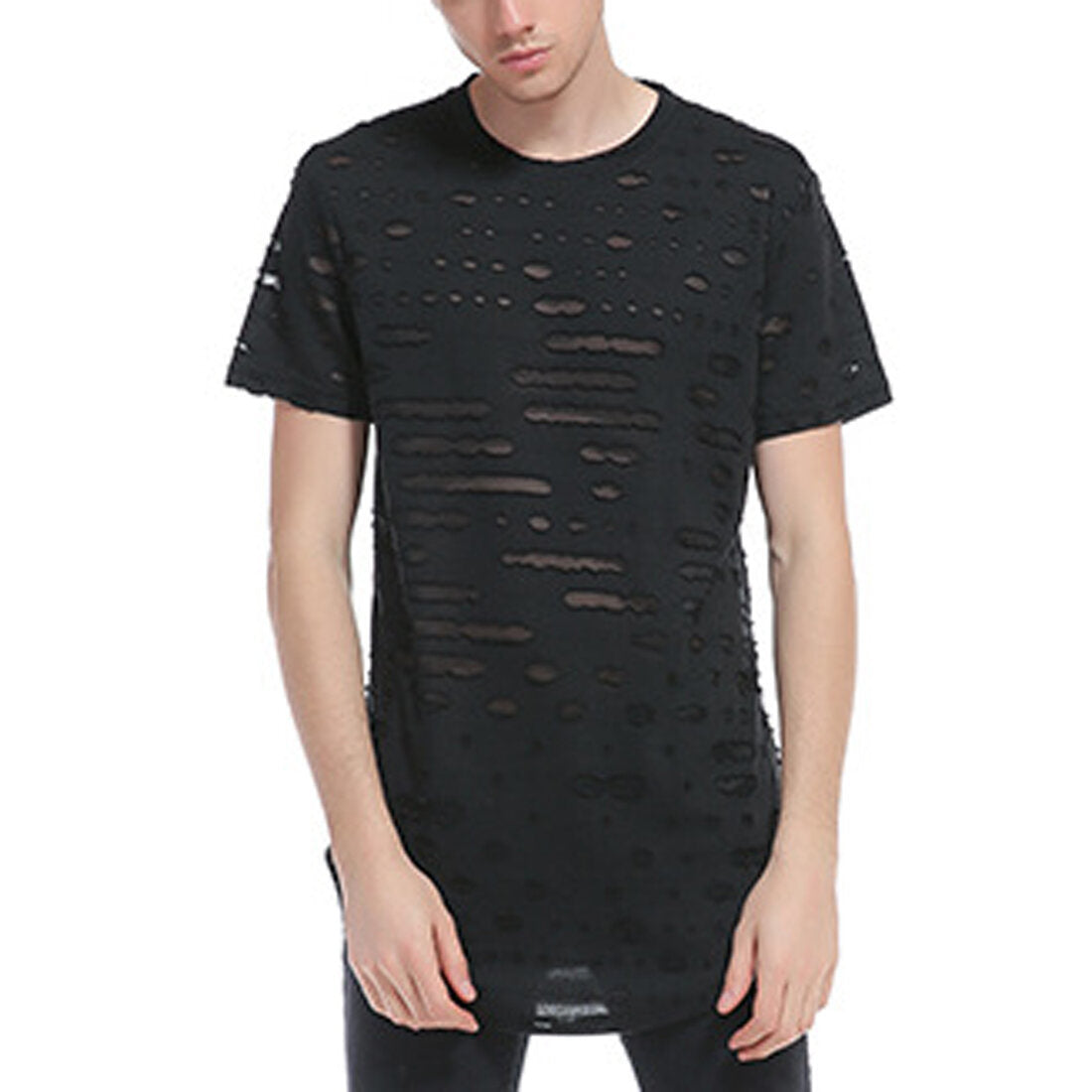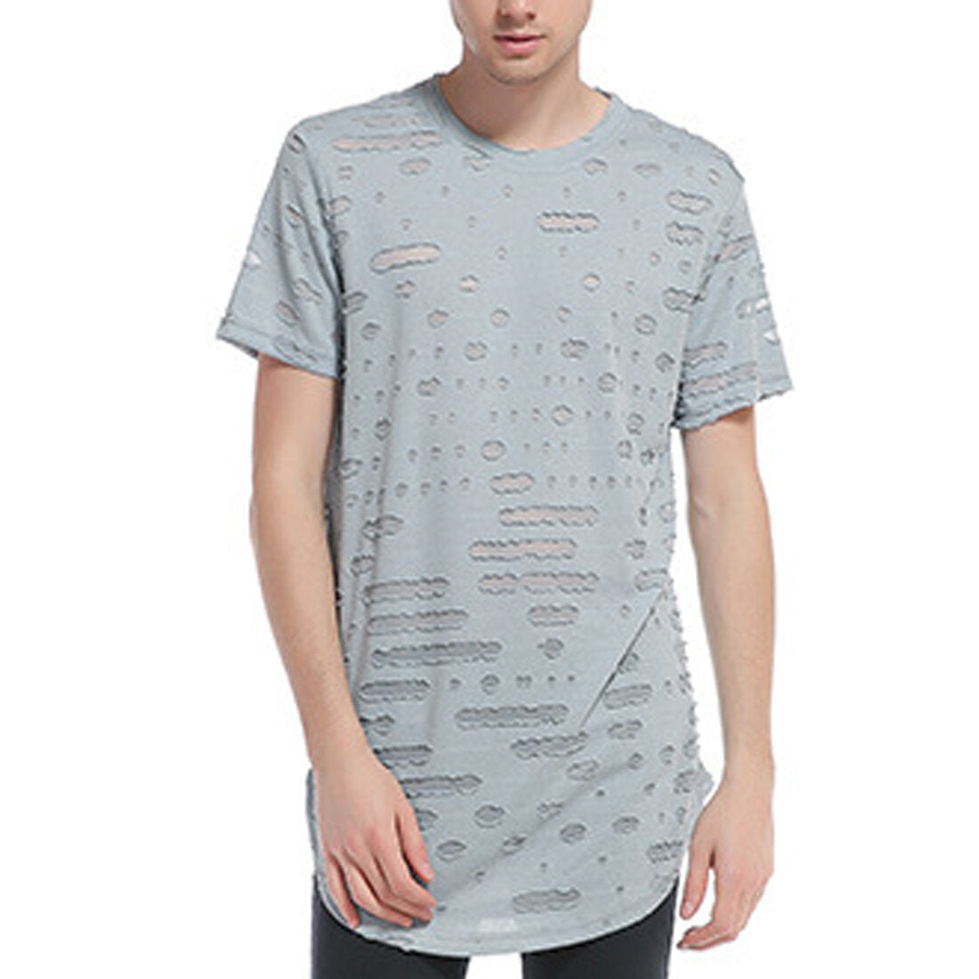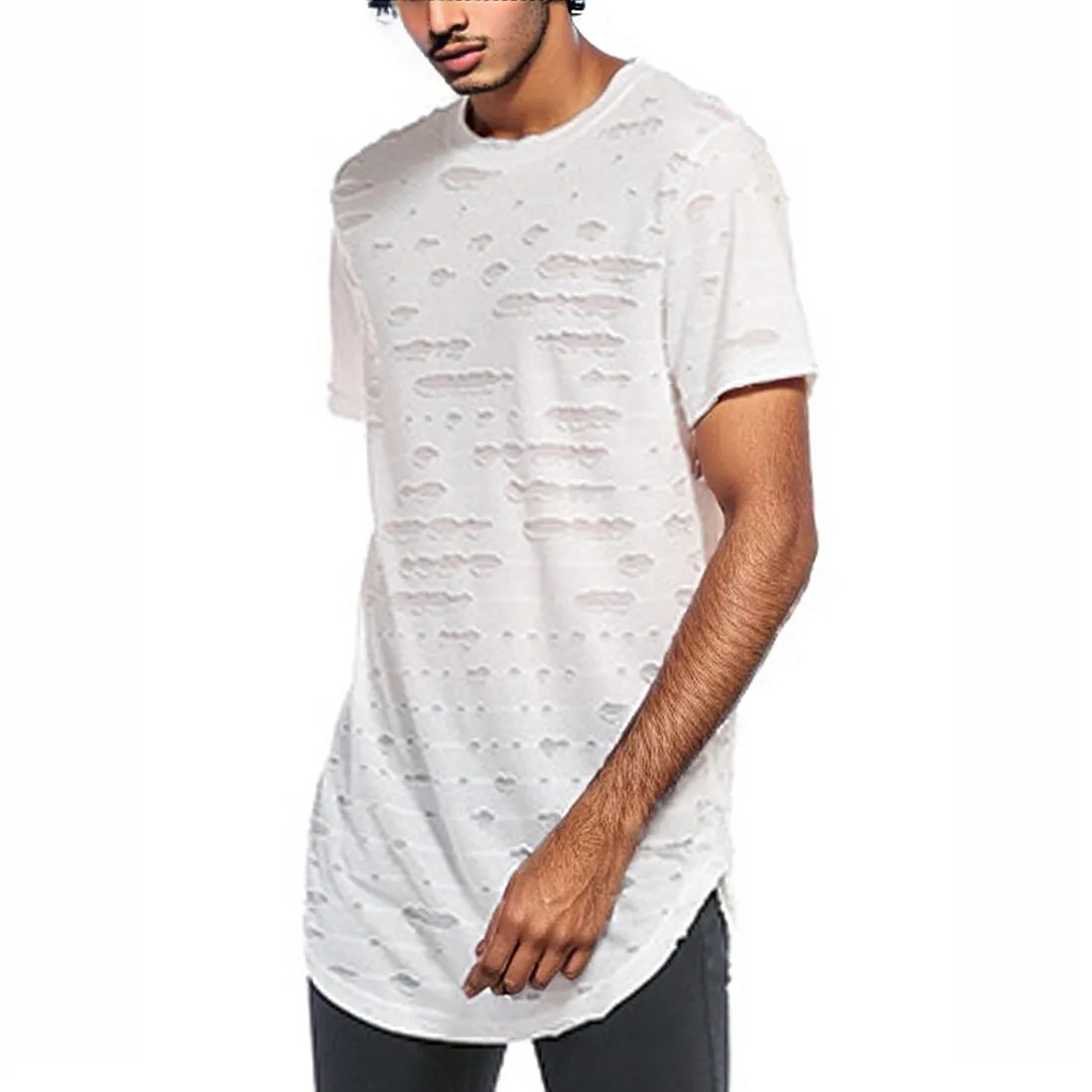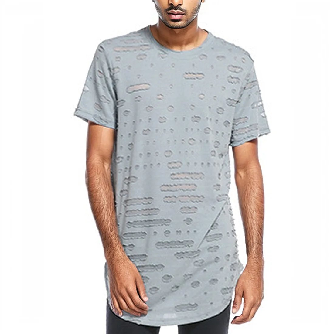 Mens Hipster Hip Hop Long Drop Tail T Shirts Hemline Hole Crewneck Tees