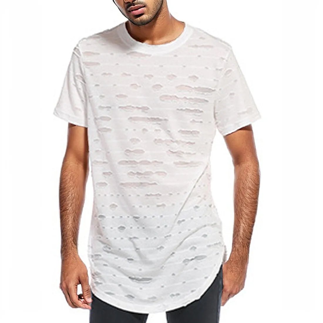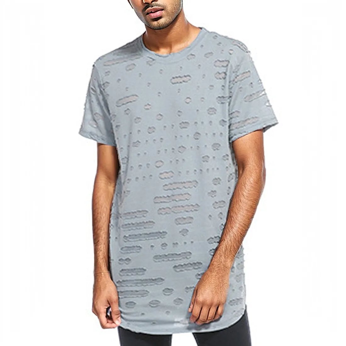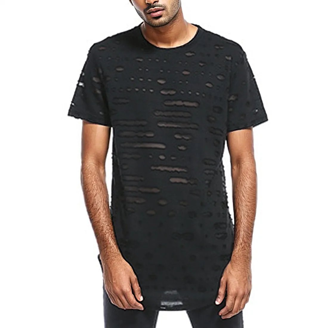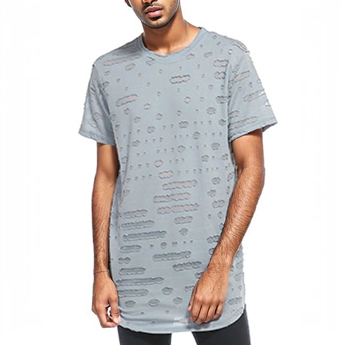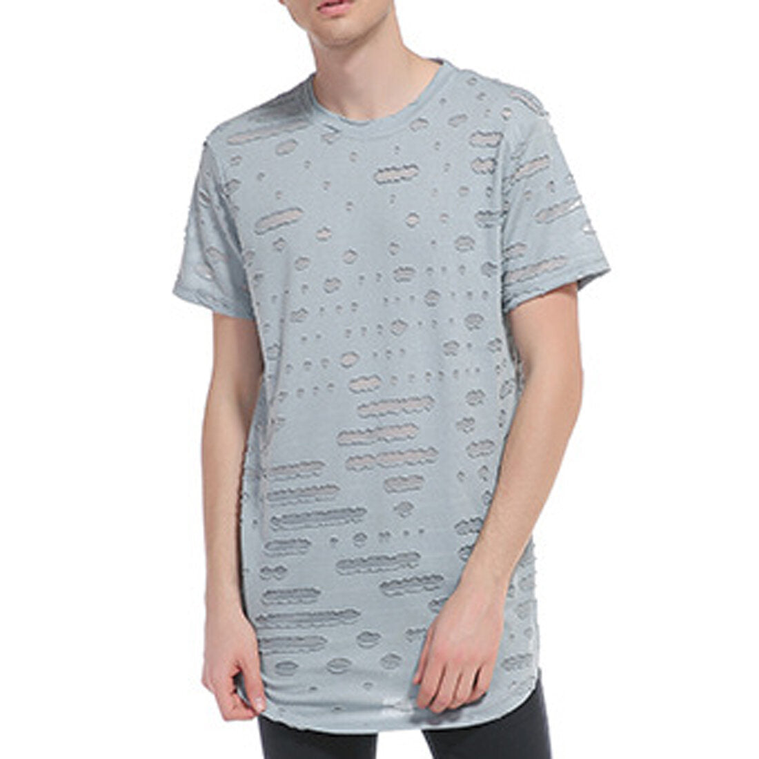 Mens Hipster Hip Hop Long Drop Tail T Shirts Hemline Hole Crewneck Tees