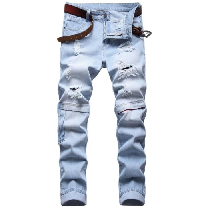 • Washed biker jeans with ribbing and special sewing pattern on leg and waist