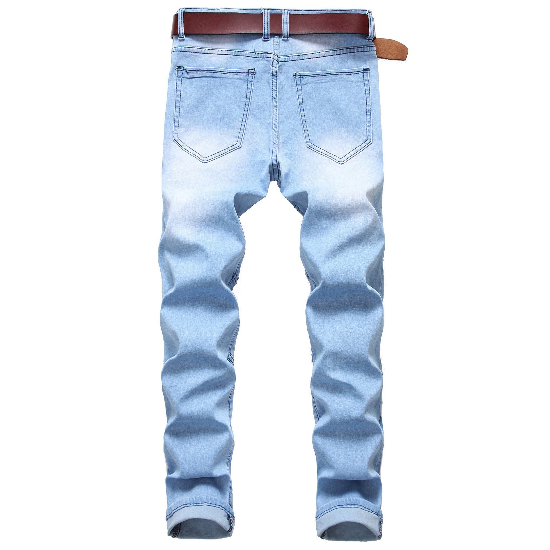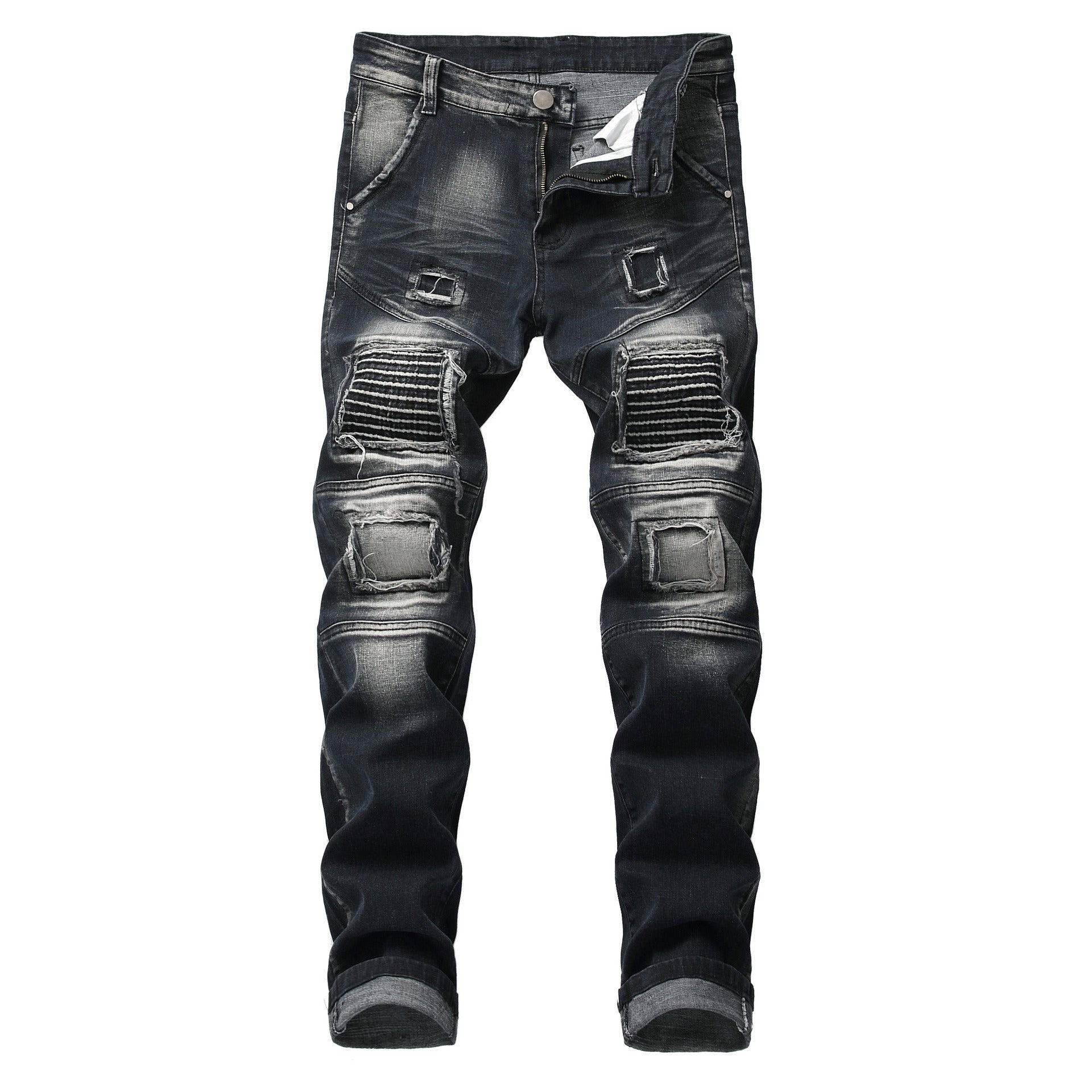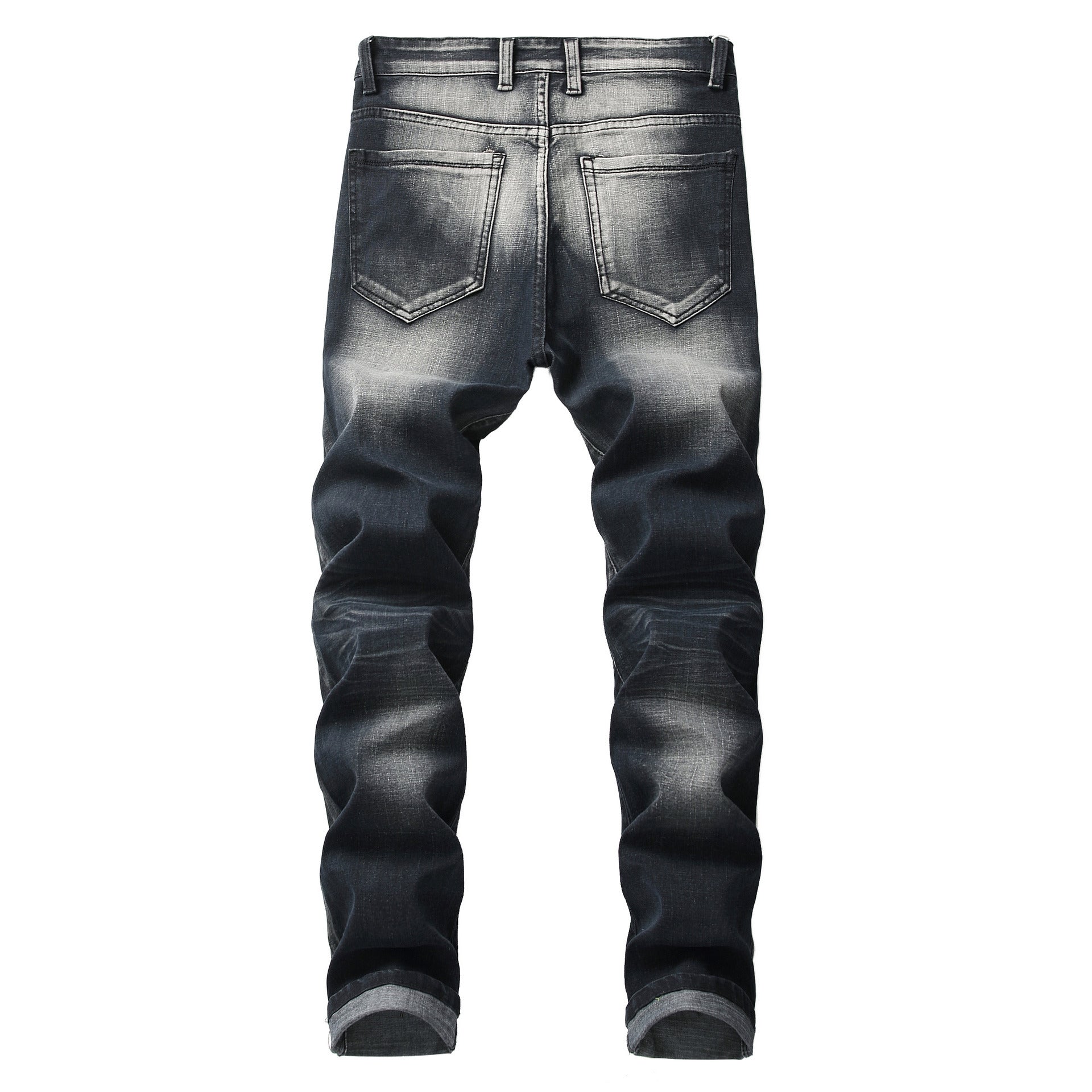 Washed biker jeans with ribbing and special sewing pattern on leg and waist