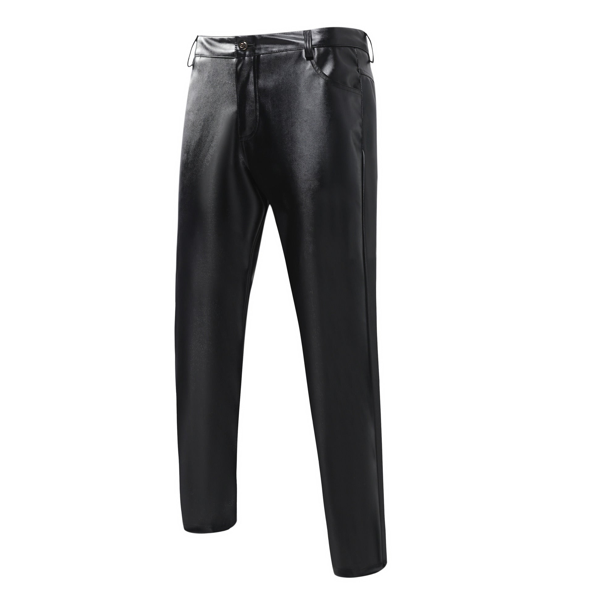 Mens Leather Pants Night Club Metallic Pants/Straight Leg Trousers