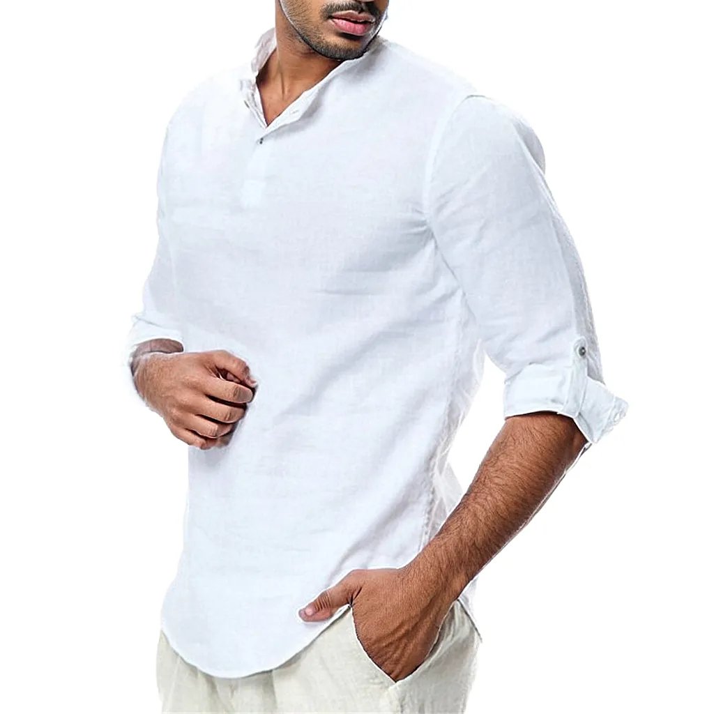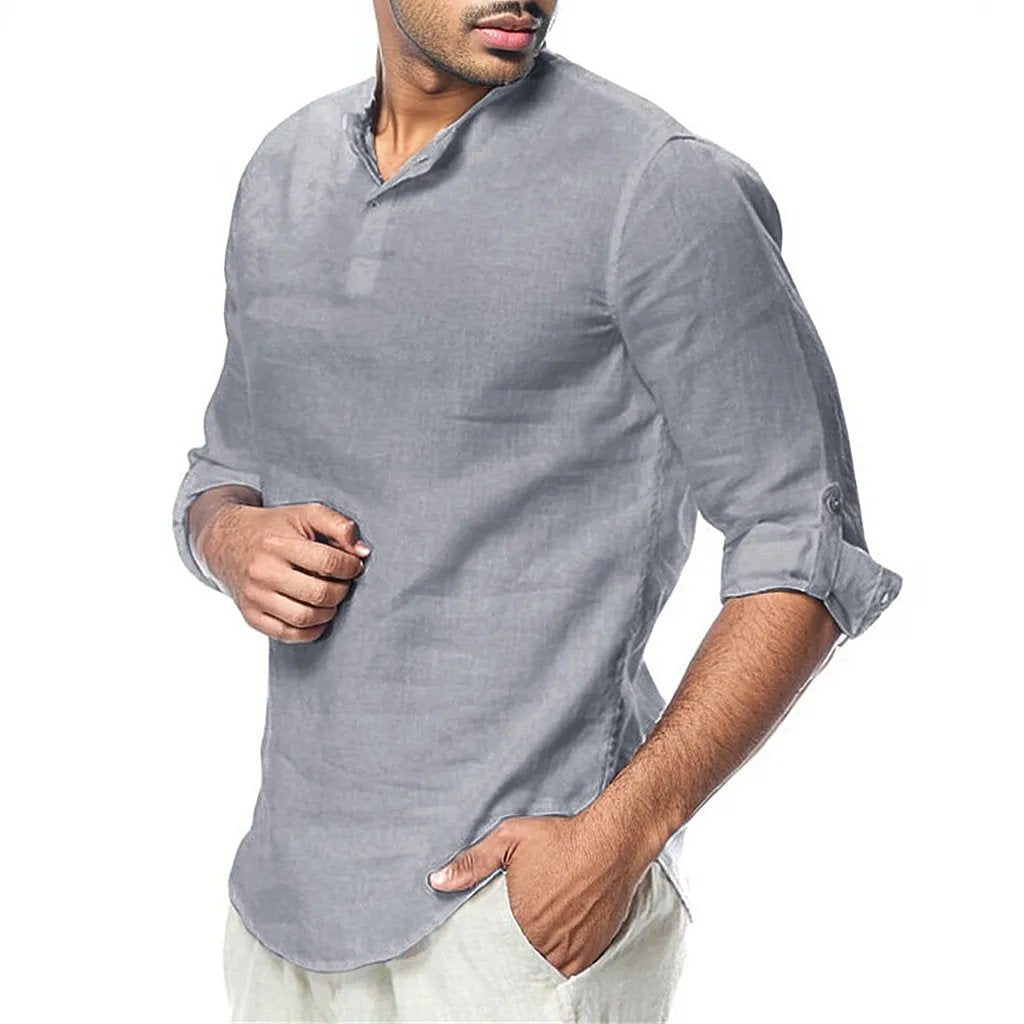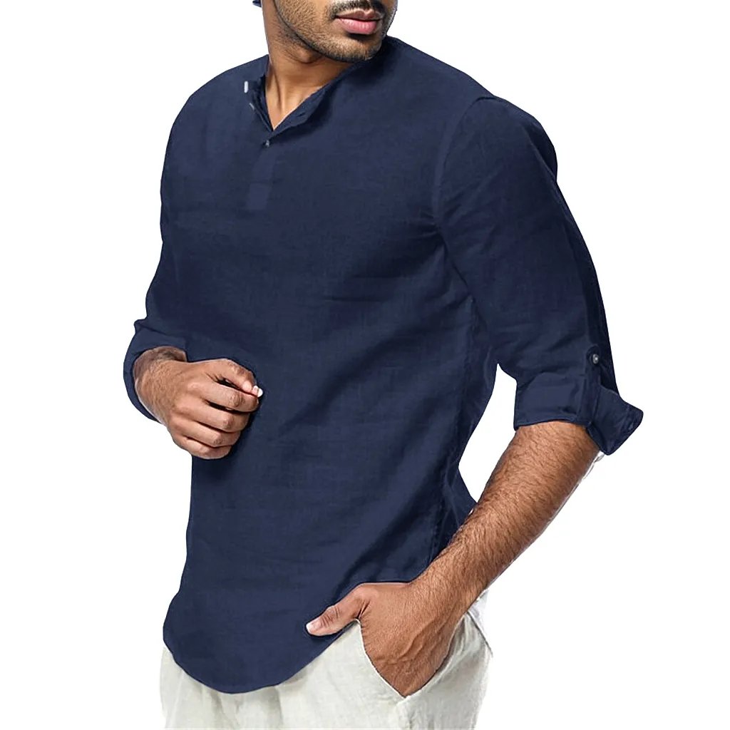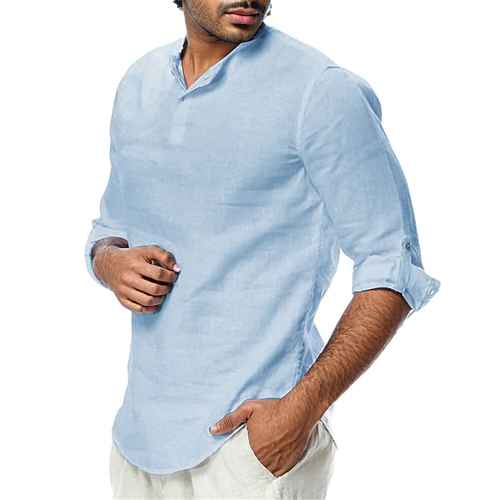 - [FEATURES]: Beach shirt for men, simple style, henley collar, lightweight, linen cotton, long sleeve(Roll-up), button up, pure color, loose fit, v-neck. Make You Beautiful, Fashionable, Attractive.