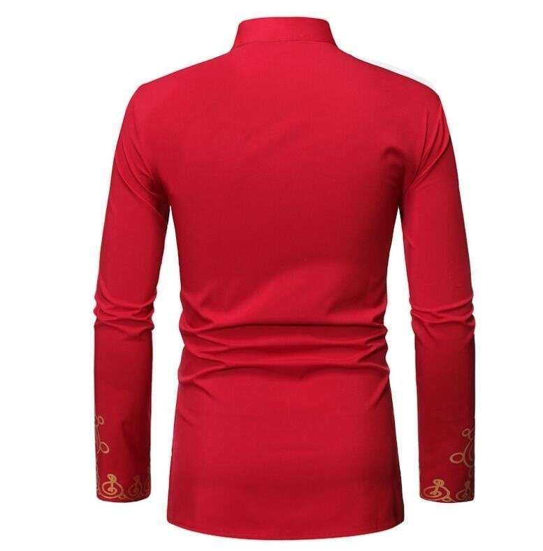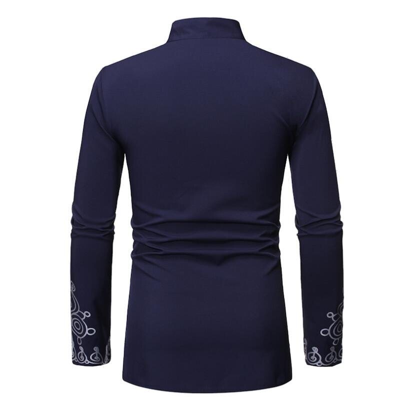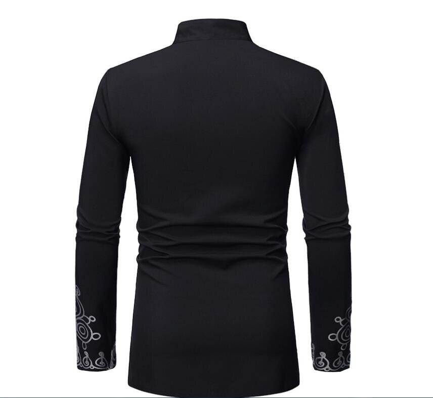 Mens Mandarin Collar Long Sleeve Button Down Shirt