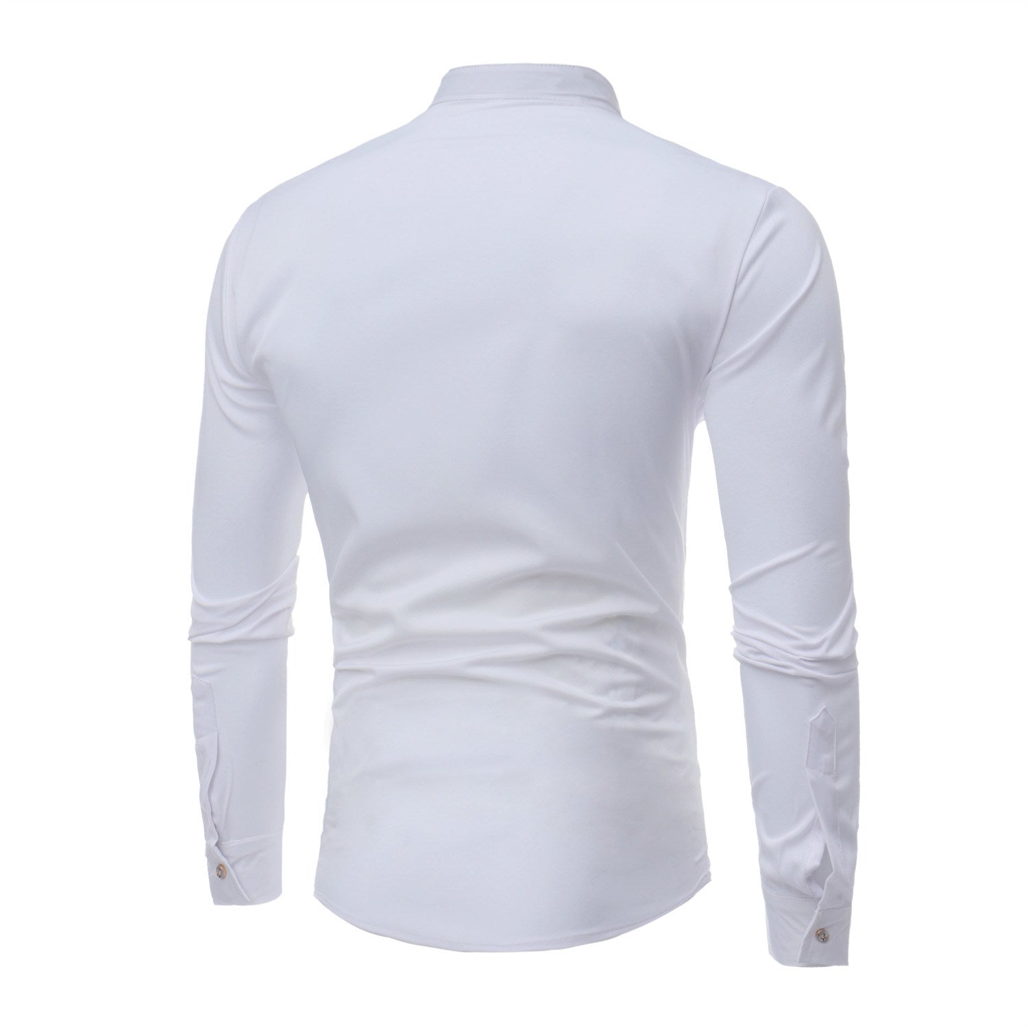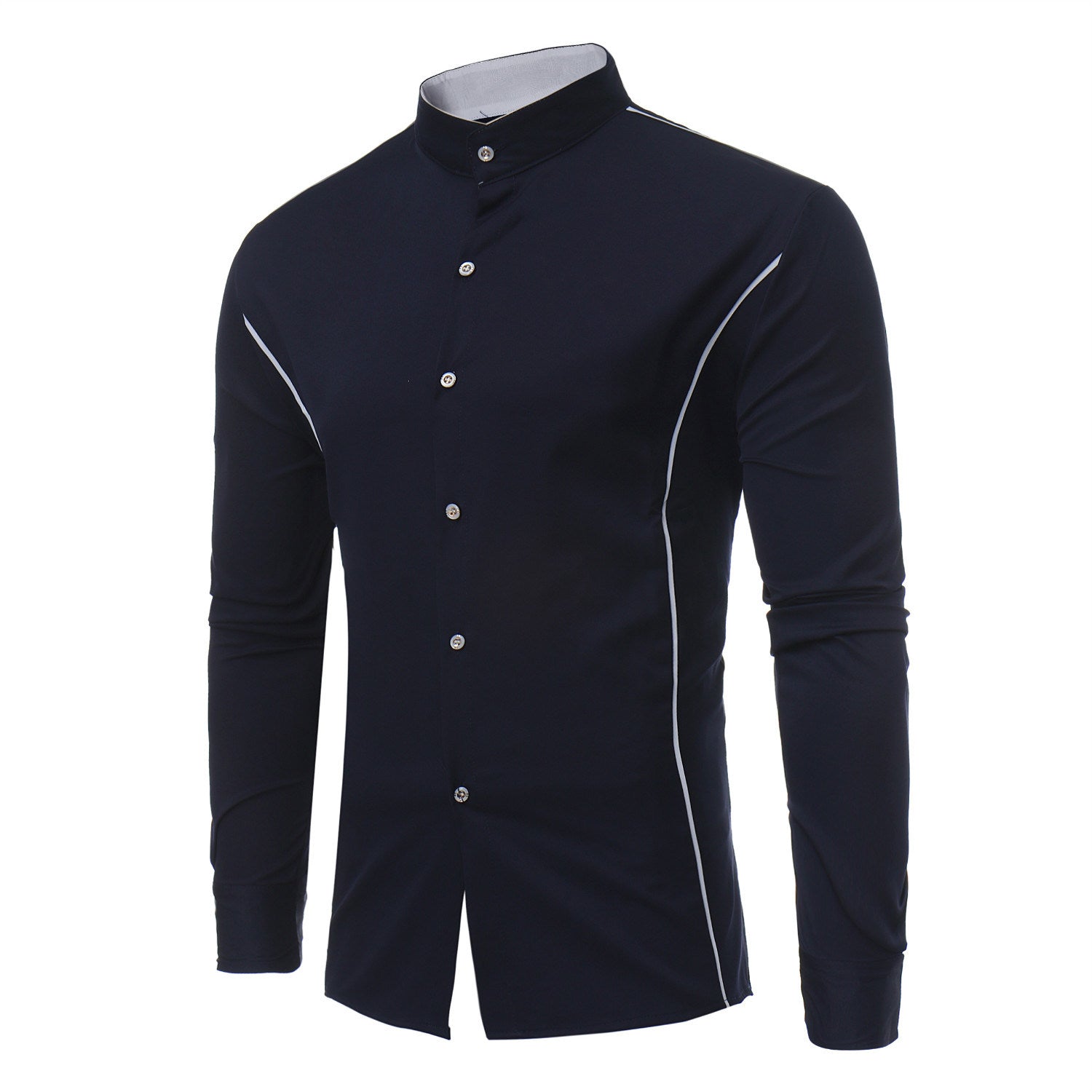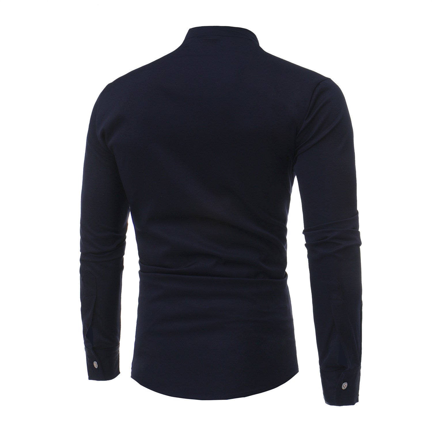 Mens Mandarin Collar Slim Fit Long Sleeve Casual Button Down Dress Shirt