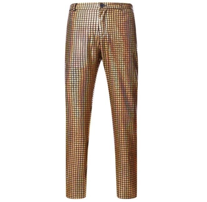 Mens Metallic Shiny Gold Pants Party Dance Disco Nightclub Pants Straight Leg Trousers