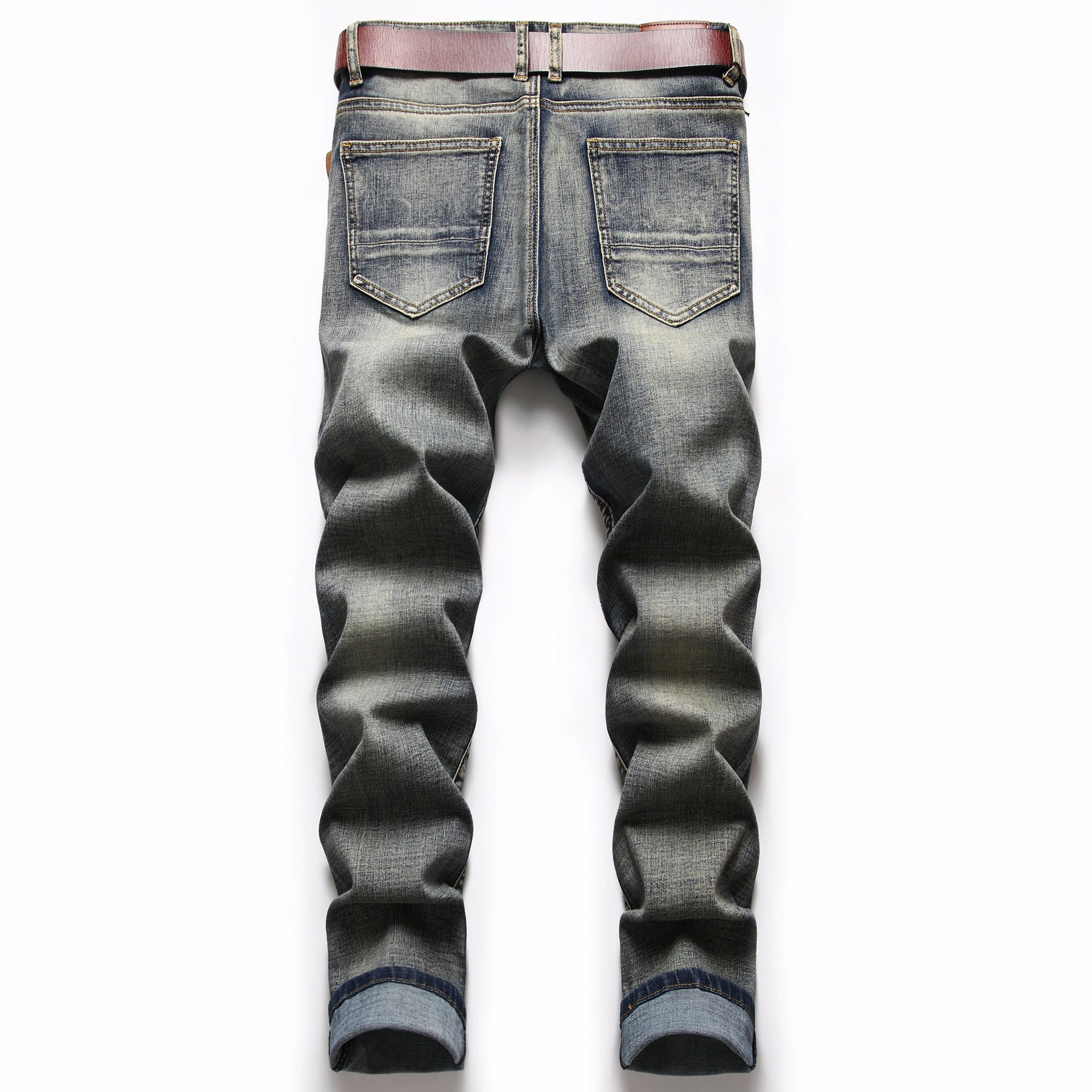 Mens Ribbed Jeans Straight Fit Denim Pants