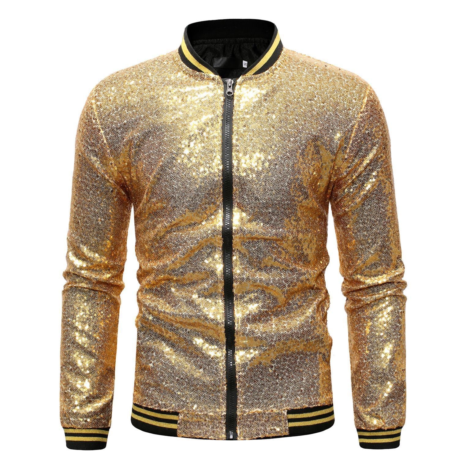 Mens Stylish Gold Sequined Jacket Prom Coats