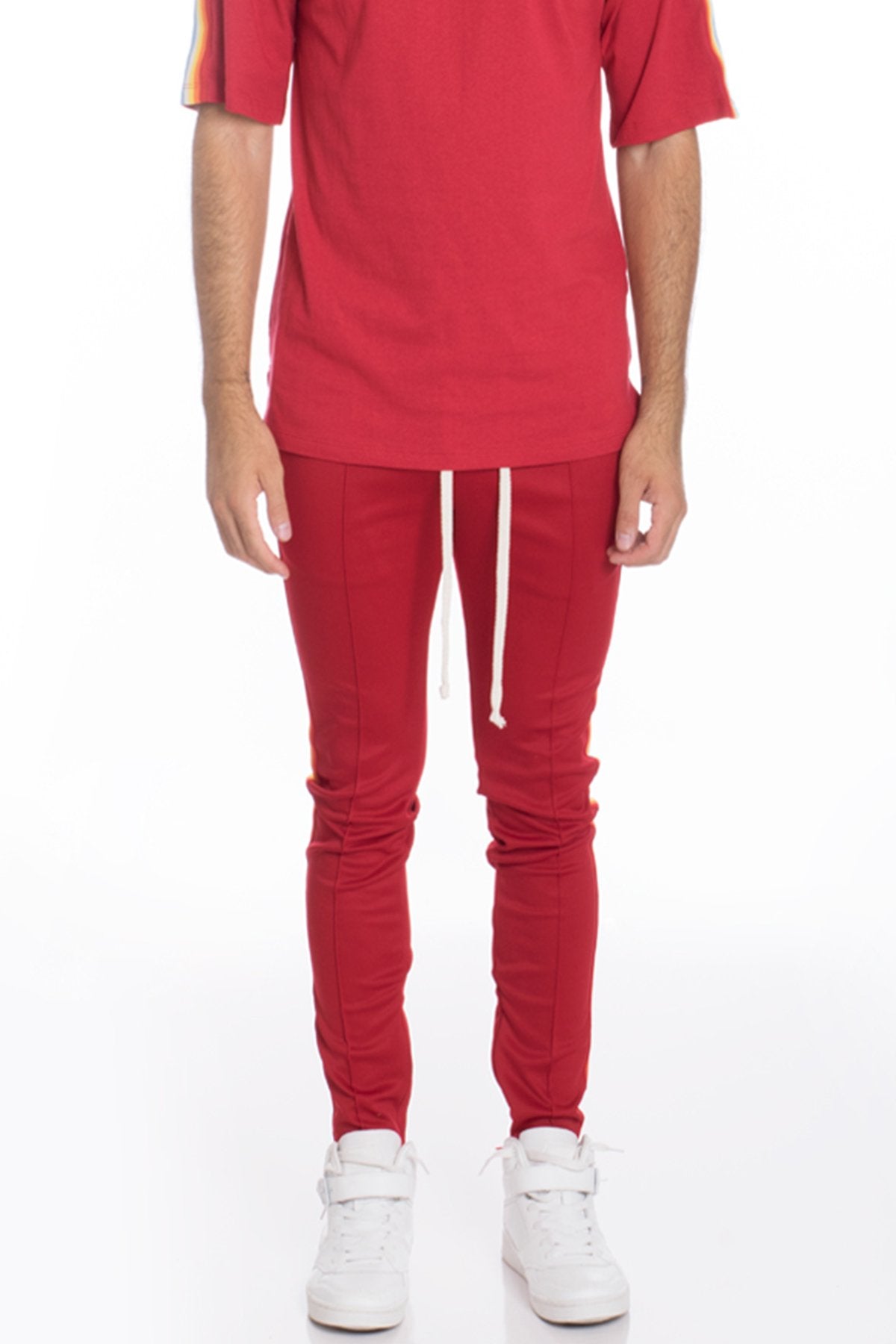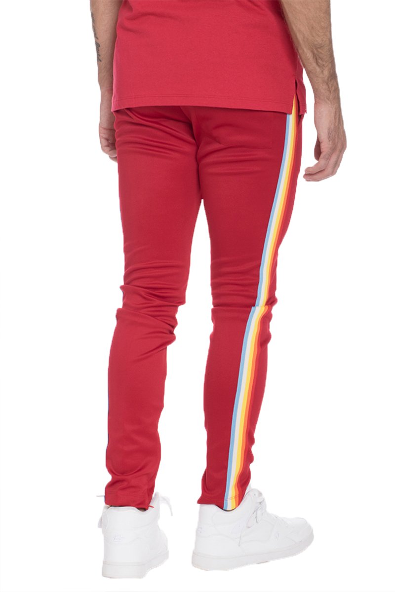 The rainbow pants are designed with a custom-developed polyester-spandex fabric giving you more stretch and movement than other track pants, These pants feature ankle zipper on the out-seam, elasticized-self ribbing at waist with an extended natural cotton drawcord. Pants are adjustable with the elastic waistband and drawstring.
