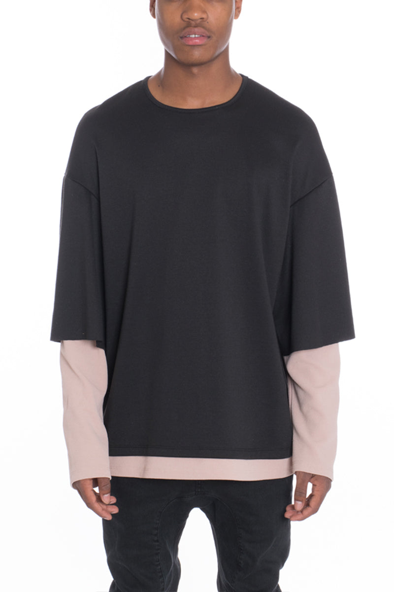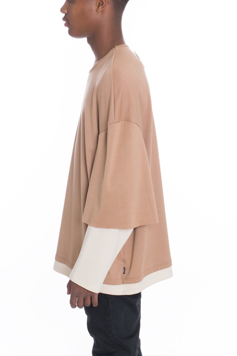 Get the layered long sleeve look without actually having to layer. Two tone long sleeve tshirt. Long sleeve attached to a short sleeve.