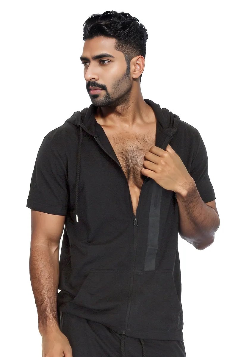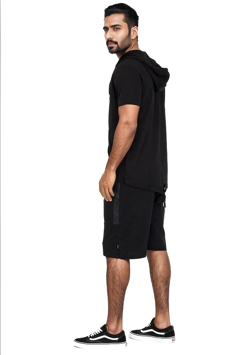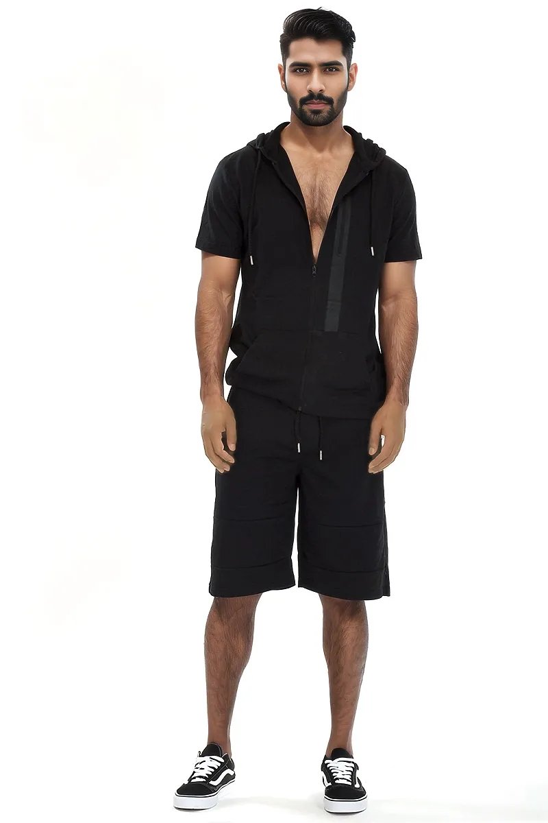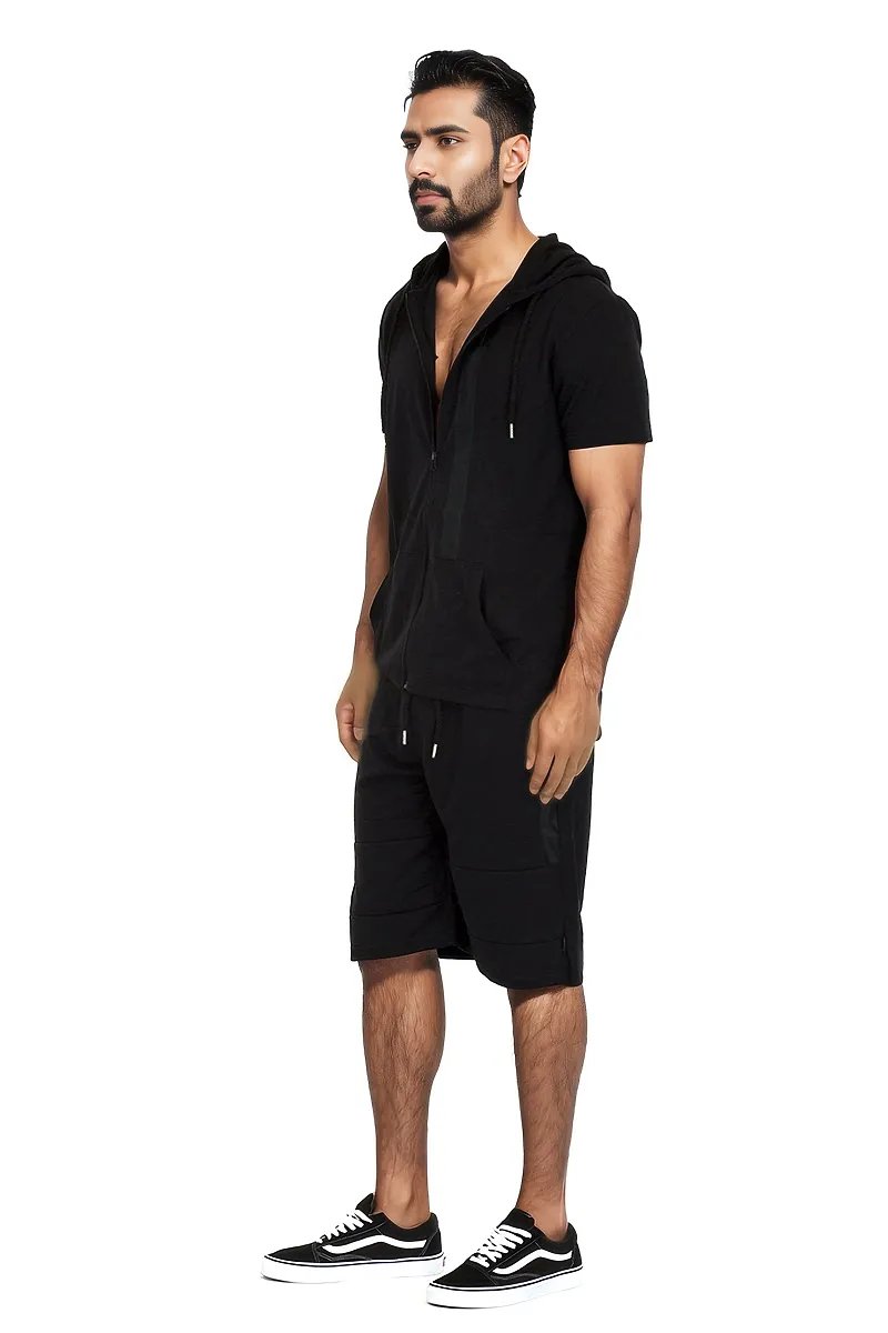 This short sleeve and short hoodie set includes a full zip hoodie with drawstrings and elastic waist band short. Staple piece to any closet. Light weight and comfortable fabric- easy to wear every day and for active activities.