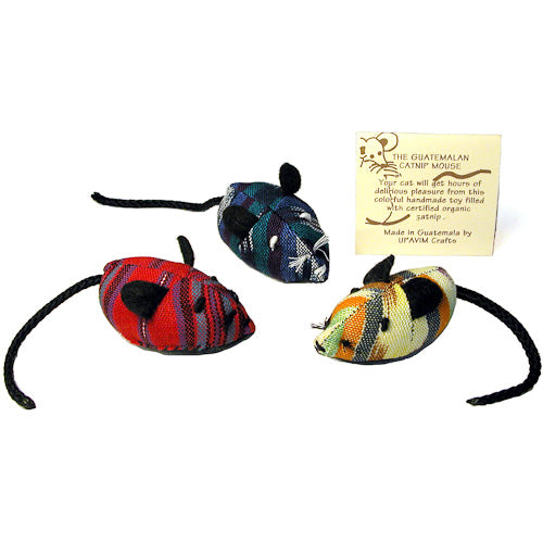 These cute catnip mice are handmade by women artisans from the UPAVIM cooperative on the outskirts of Guatemala City. UPAVIM, which stands for United for a Better Life, is an 80 member artisan enterprise helping women through social and economic empowerment. In addition to training women in creating various handmade textiles, UPAVIM has established a school, a pharmacy and a bakery within their cooperative.