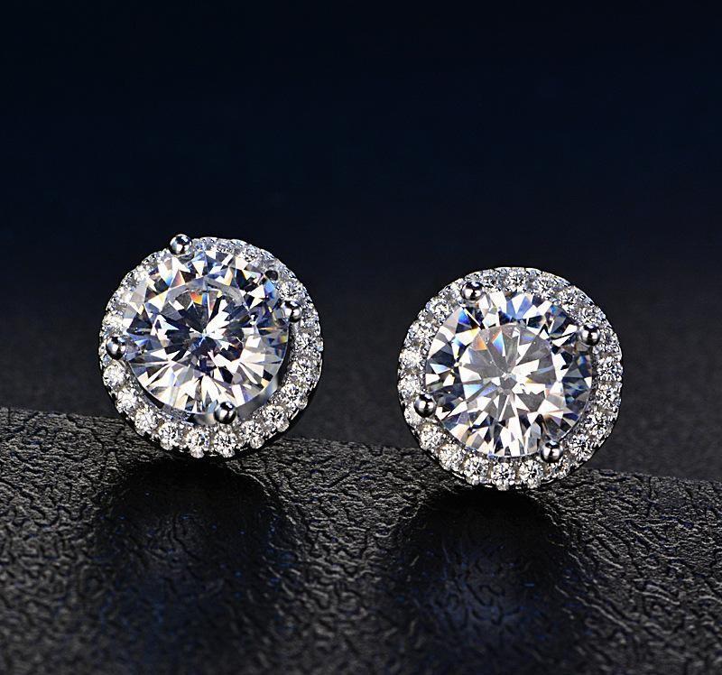 Princess-perfect, stud earring with crystals are designed to delight. An intricate halo of diamonds embraces and accentuates the center gem of this brilliant earring.