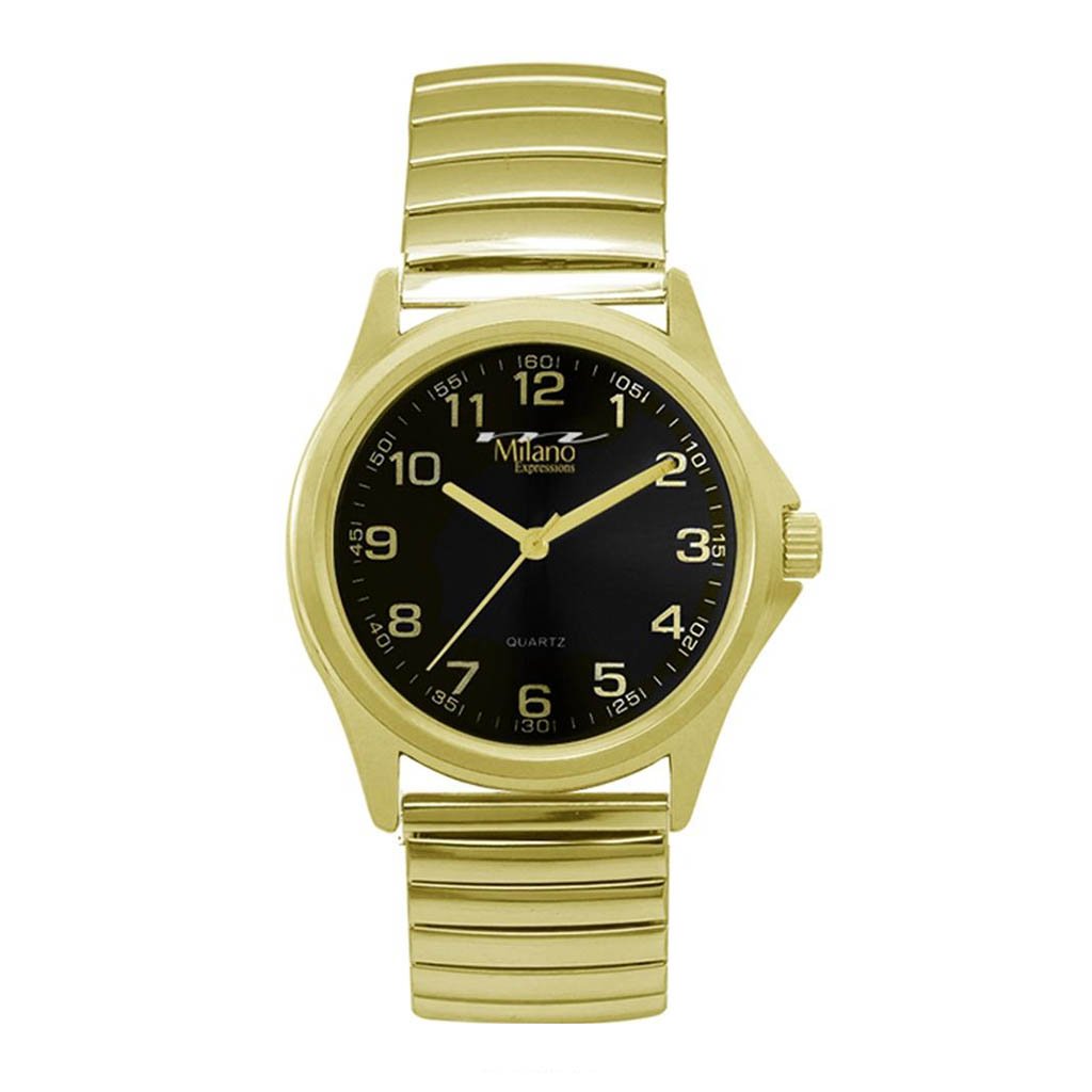 M Milano Expressions Gold Flex Band Watch With Black Dial
