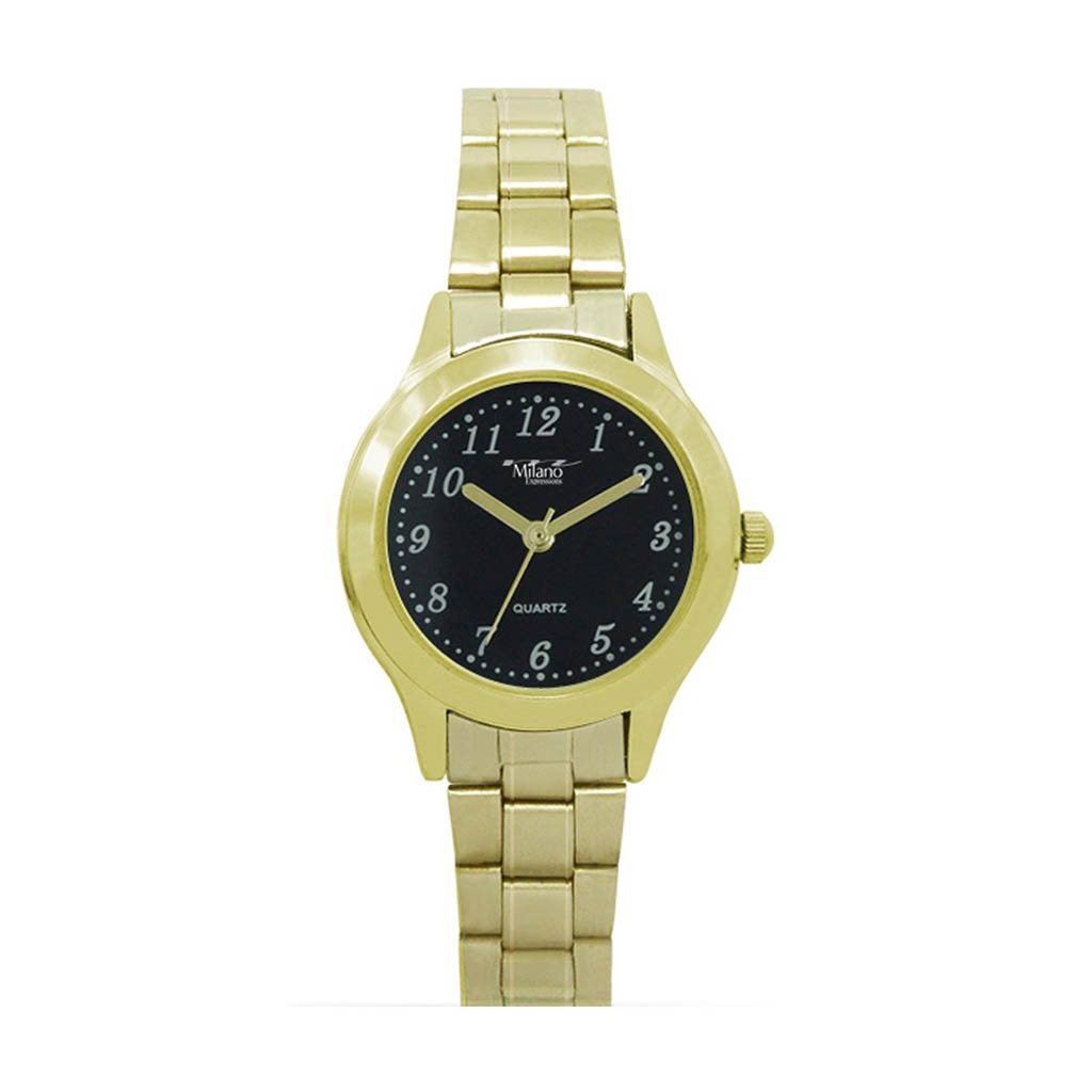 Milano Expressions Gold Metal Band Watch with Gold Case Black Dial